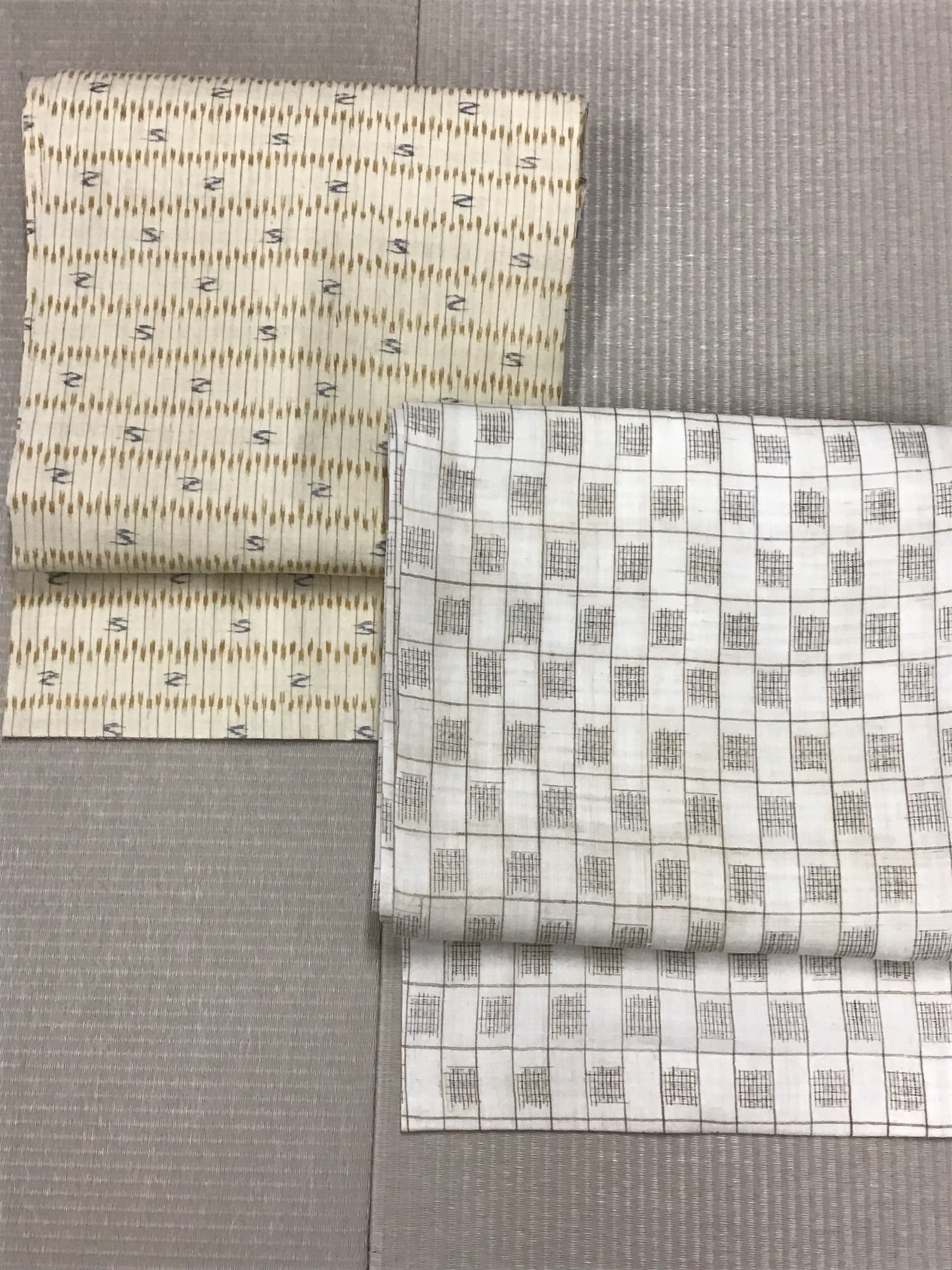 それらを帯にすると、乙女チックで大人かわいいもの、昔懐かしく大正ロマンがくすぐられるもの、又、自然布など、上質な夏素材をお手元に置かれたい方、など、多種のお楽しみがお待ちしています。