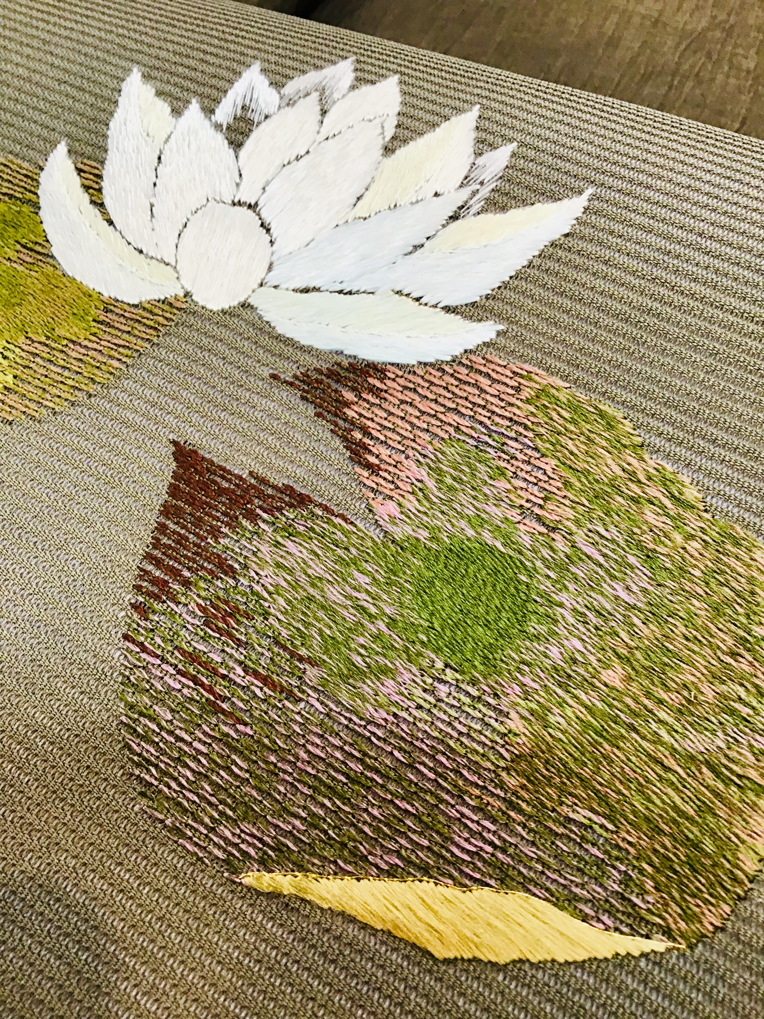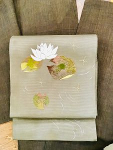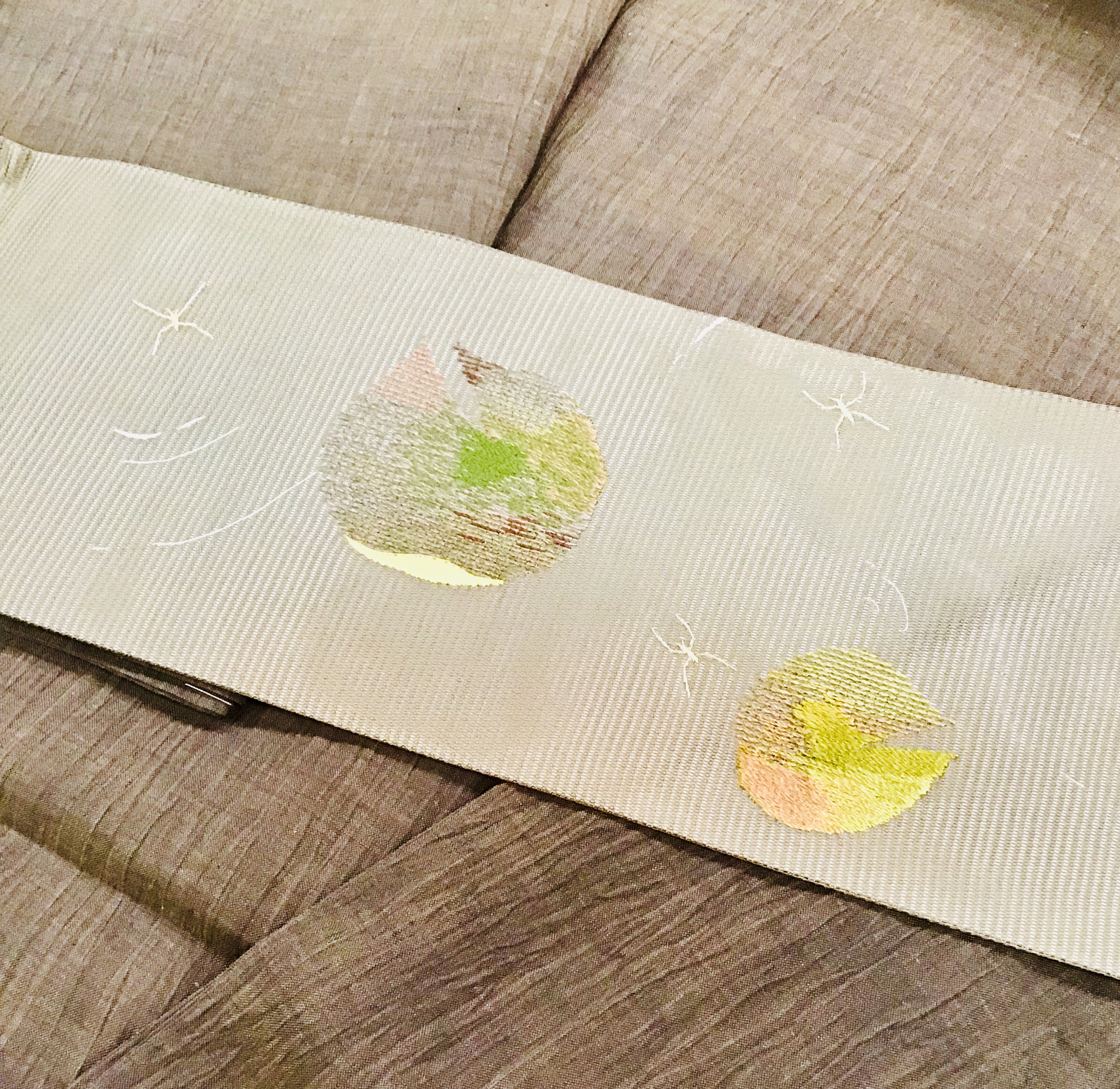 コーディネートの楽しみ 日一日と夏が近づいてきます… 夏になると爽やかな白っぽい着こなしが多くなりますが、濃い色の着こなしも良いものです。 麻着物にあえて同系色の帯をあわせて見ました。 小物の色で遊ぶのも楽しいものです。 近江縮 ¥100,000円+税 身丈:4尺3寸5分(約165.3㎝) 裄:1尺7寸7分(約67.2㎝) 蓮子にアメンボウ刺繍名古屋帯 ¥40,000円+税