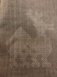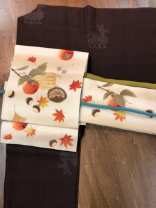 合わせた着物は、有栖川文様の鹿が飛び柄になっている本場結城紬。