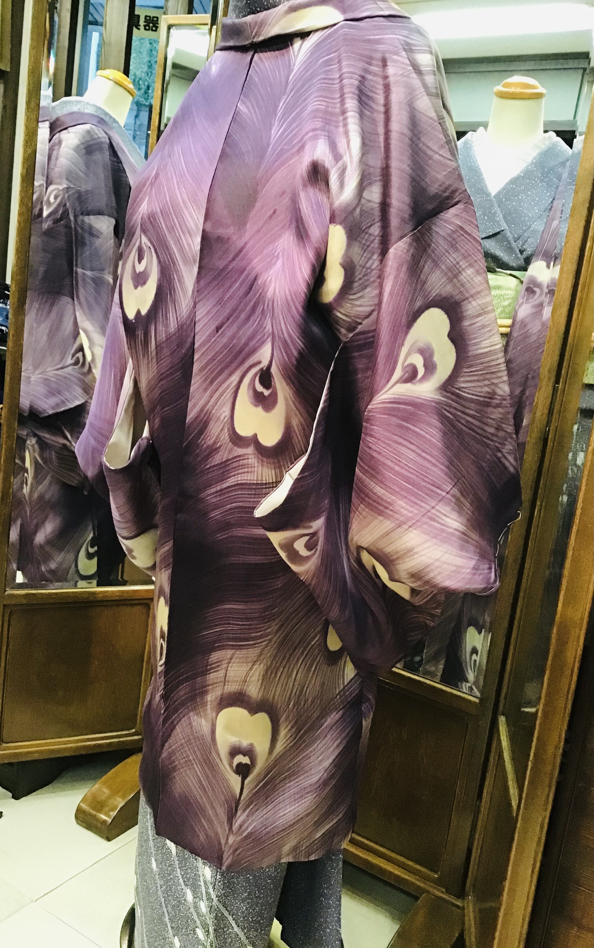 表情ゆたかに羽織もの 羽織一枚で着物姿がこんなに変化するのも、アンティークならでは。 可愛らしくも、大人っぽくも演出できます。 どの季節にもお召しいただけますが、まず春に是非! 雲文に四季の花文様長羽織 33,000円(税込) 着物21-02-03 身丈:2尺4寸5分(約93.1cm) 裄:1尺6寸8分(約63.8cm) 通信販売可 文様だけでなく、驚く軽さはまさに羽根のよう! 羽根文様羽織 着物21-02-01 身丈:2尺7寸(約102.6cm) 裄:1尺8寸(約68.4cm)