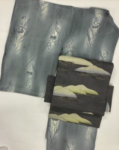今日は、お岩の着物からイメージする、色味を抑えていて、生地の美しさが引き立つ縦絽の単衣を紹介します。