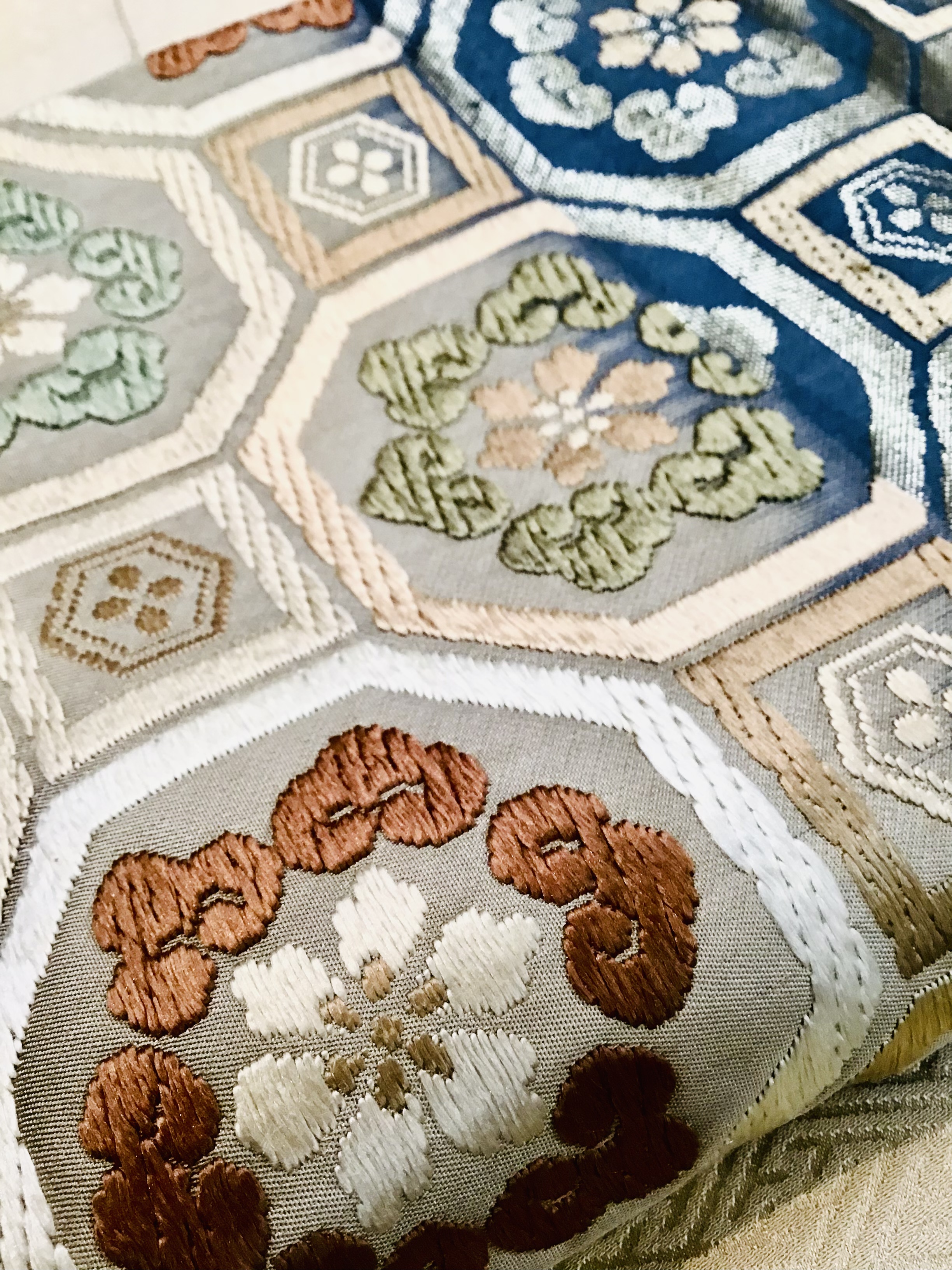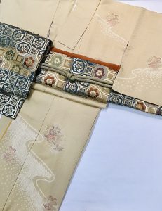 また、優しいお色目の訪問着に、唐織の丸帯で重厚感を出した装いも、お茶席では重宝です。