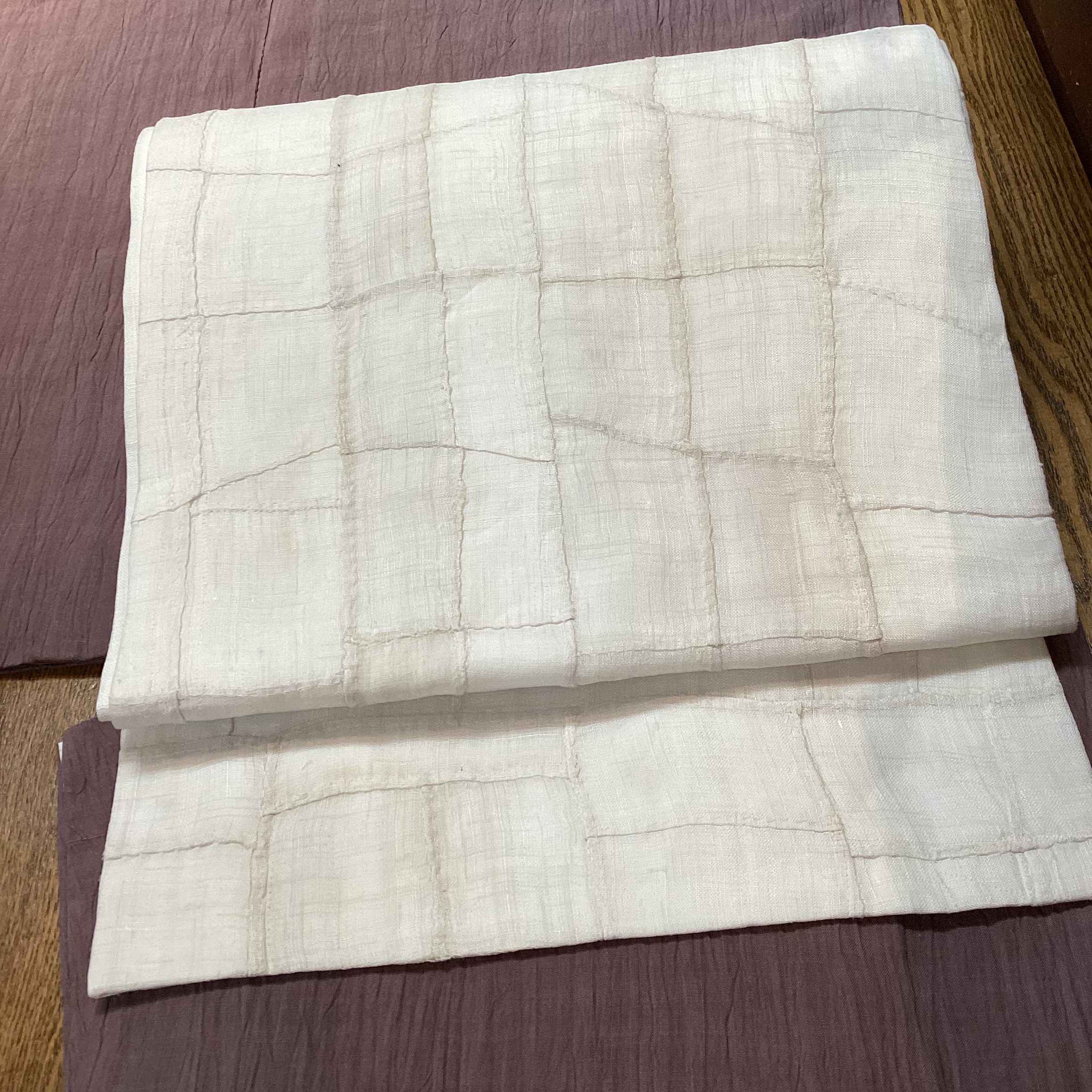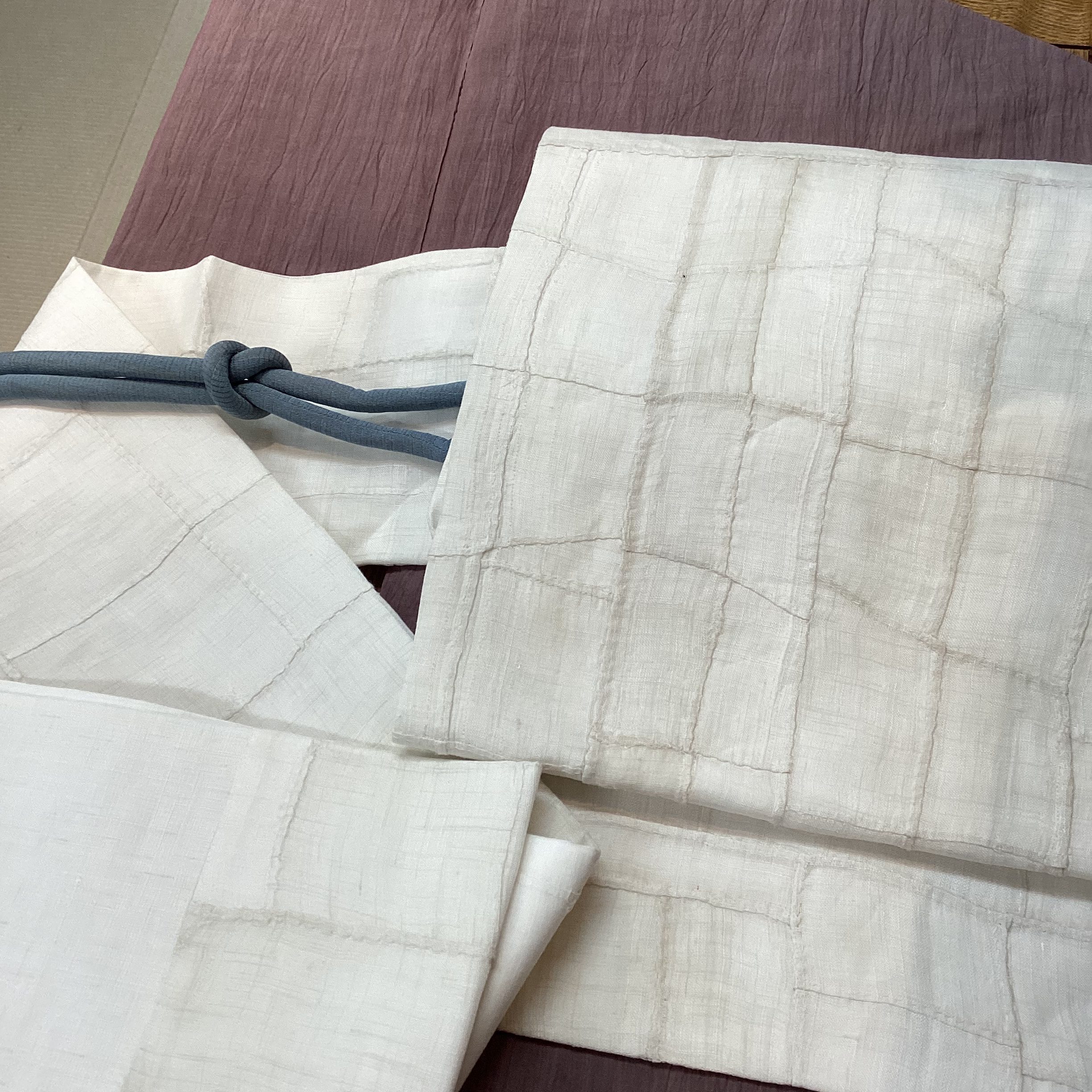 そしてこちらはその貴重な白い麻のポジャギを使って作った帯。