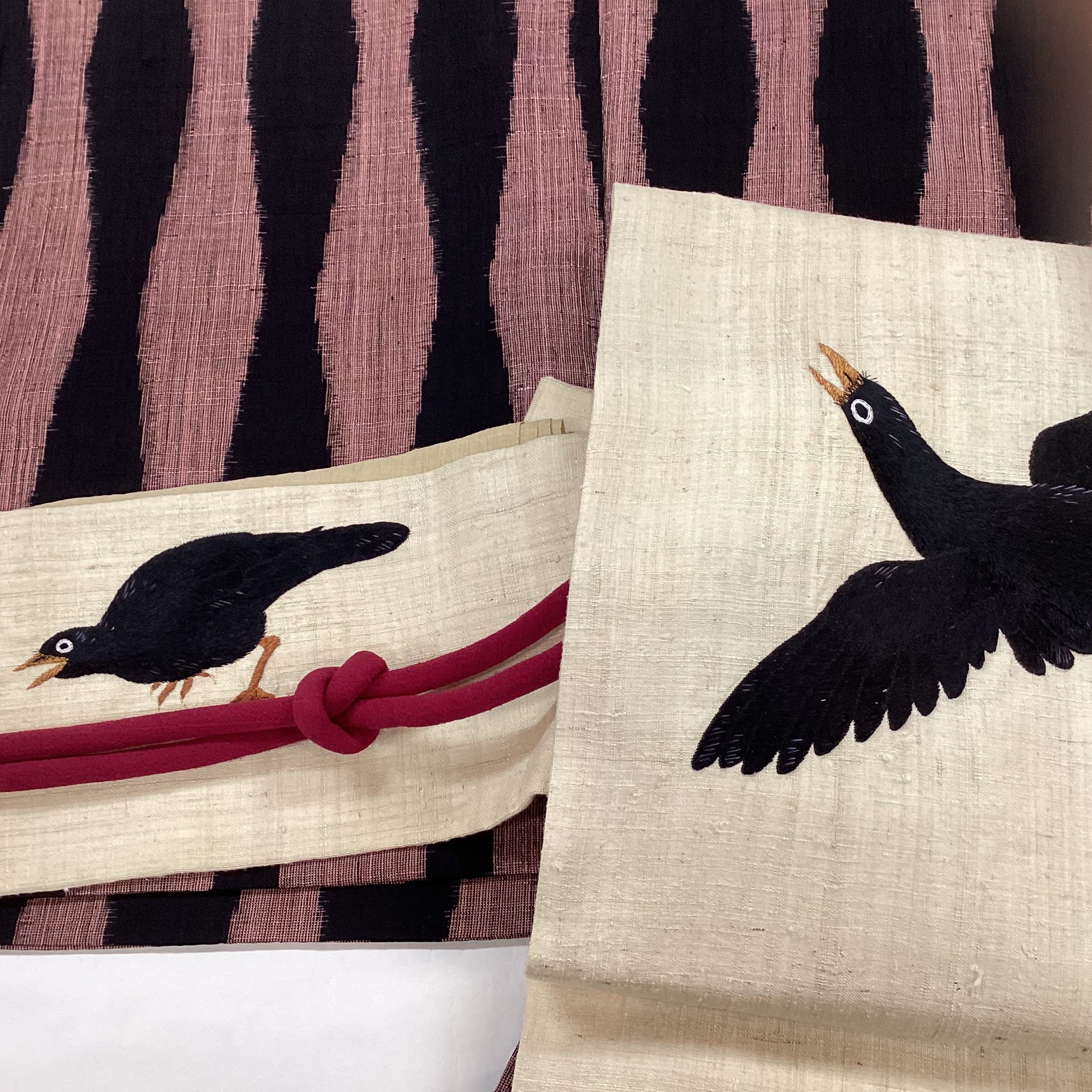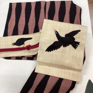 合わせたのは先日もご紹介しましたカラスの刺繍の帯。余りの可愛さに再度ご紹介いたします!
