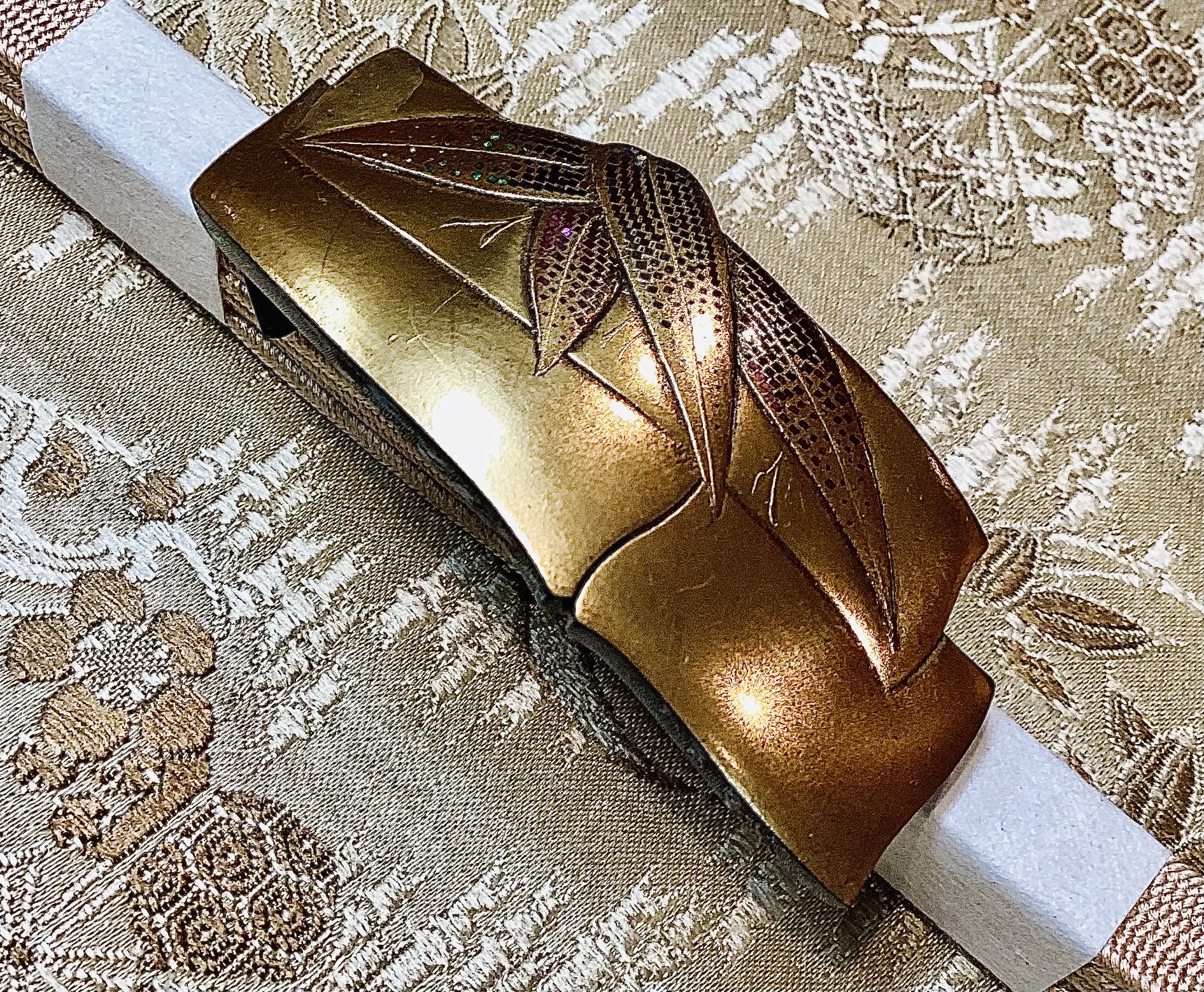 金蒔絵の竹に螺鈿で竹笹を配した格調ある帯留め 19800円