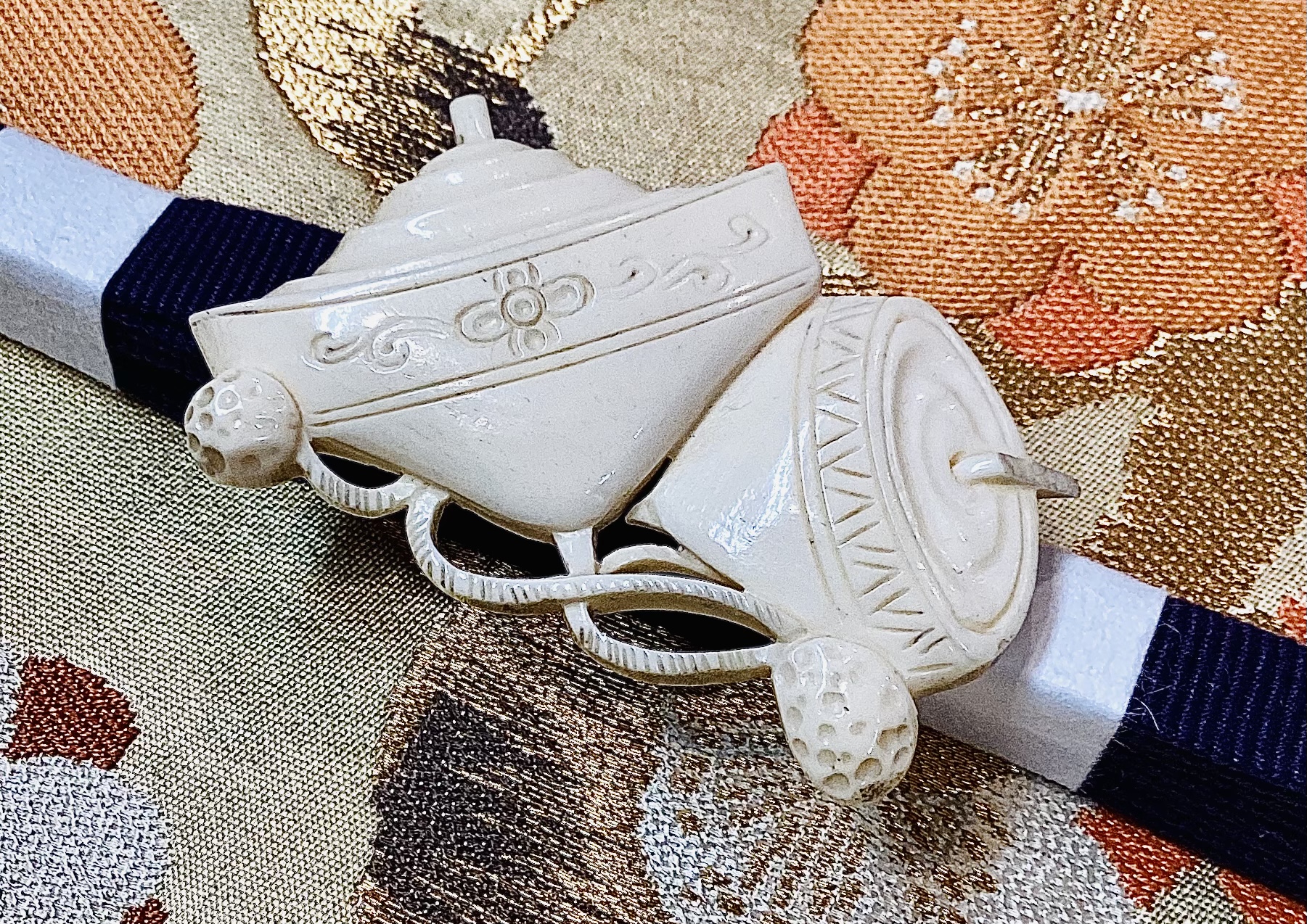 お正月らしい白いコマの帯留め 楽しげな遊び心に満ちた帯留め 5000円