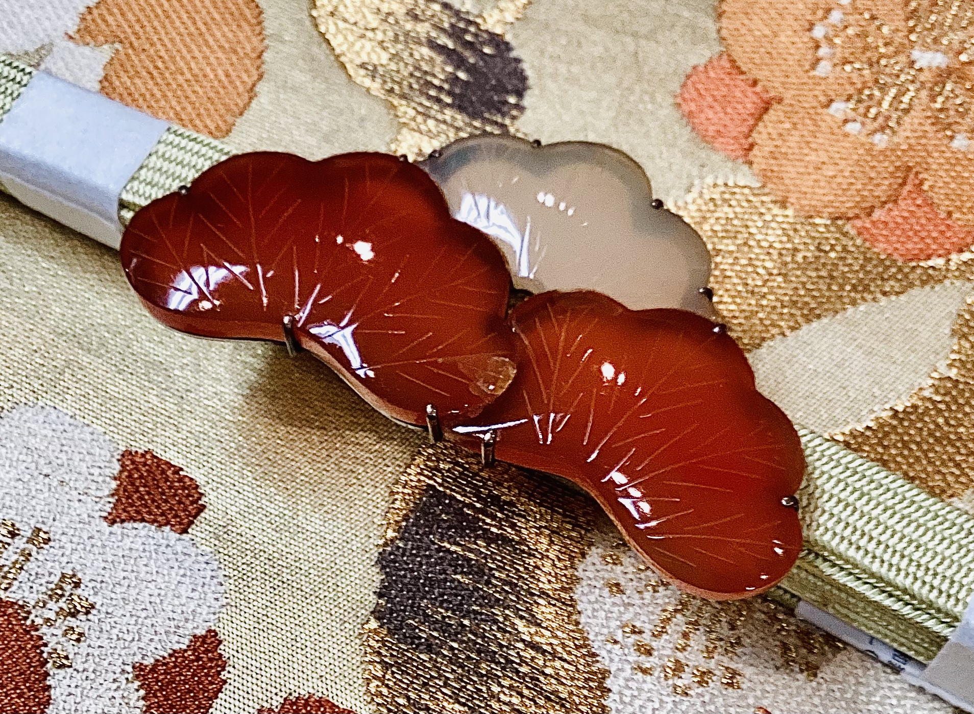 紅白の瑪瑙の三階松の帯留め 可愛く豪華! 20000円