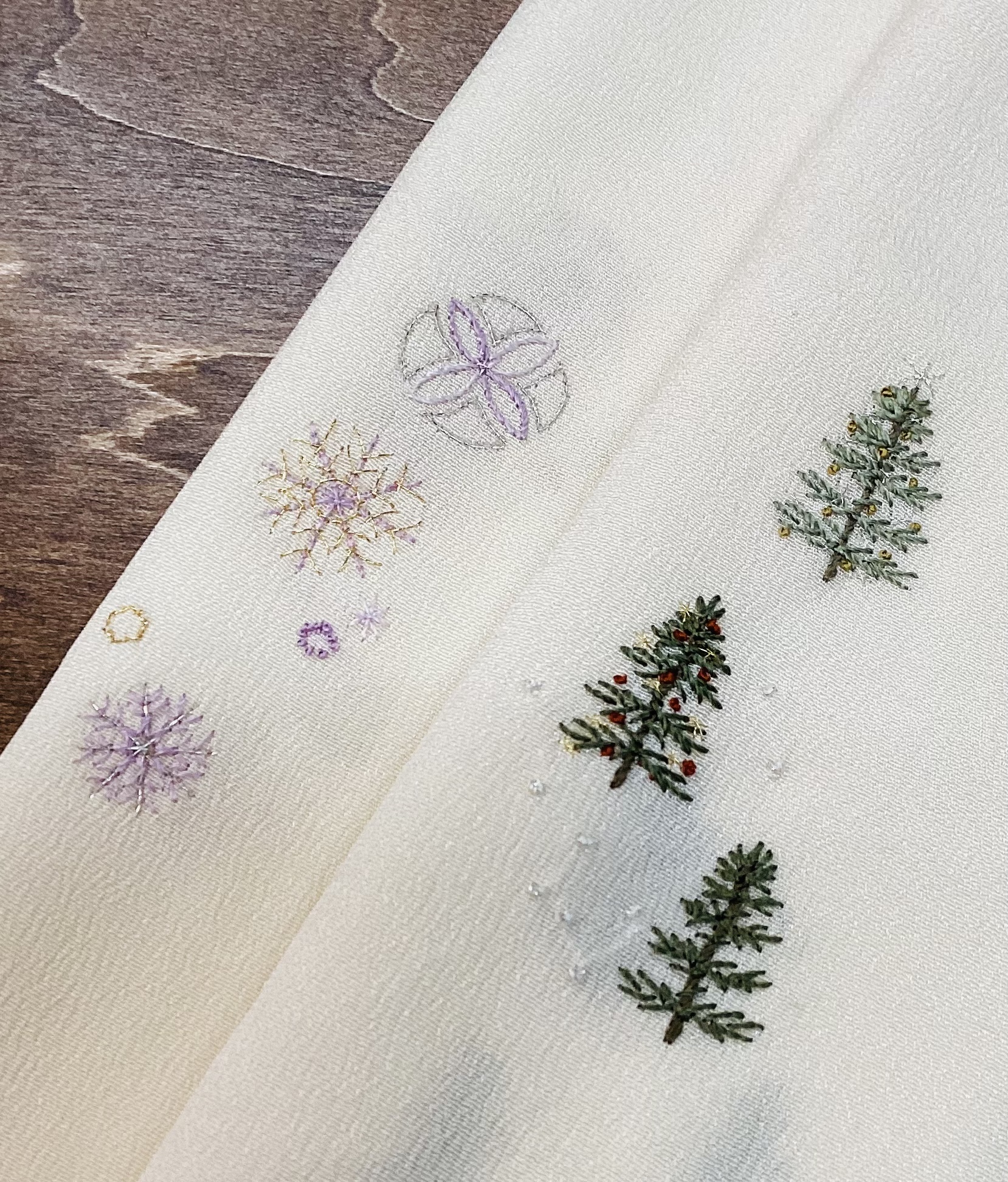 ツリーや、雪の結晶、雪の花で襟元を華やかに。。