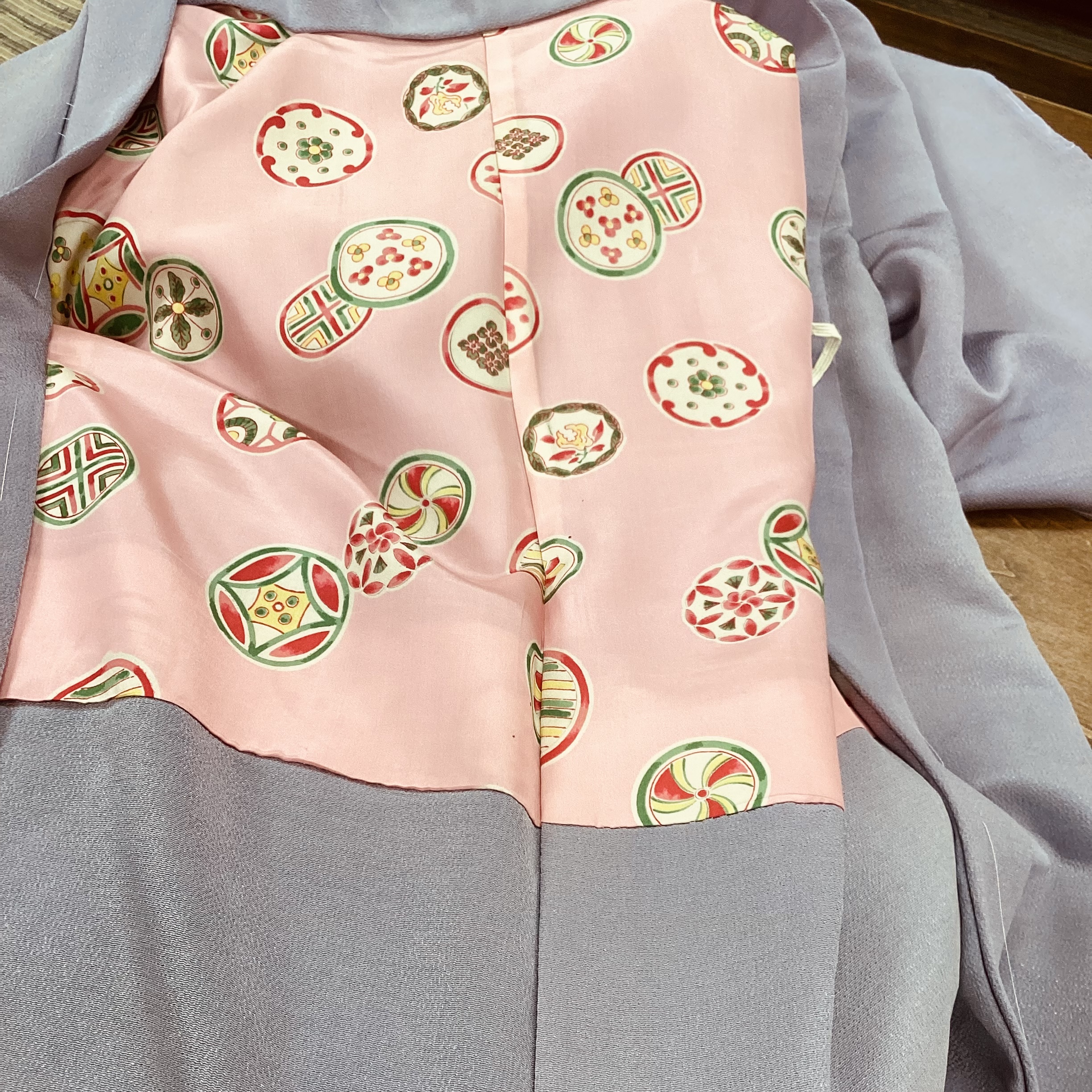 薄藤色の羽織 23−02−20 裄1尺8寸5分(約70cm)、身丈2尺6寸(106cm)