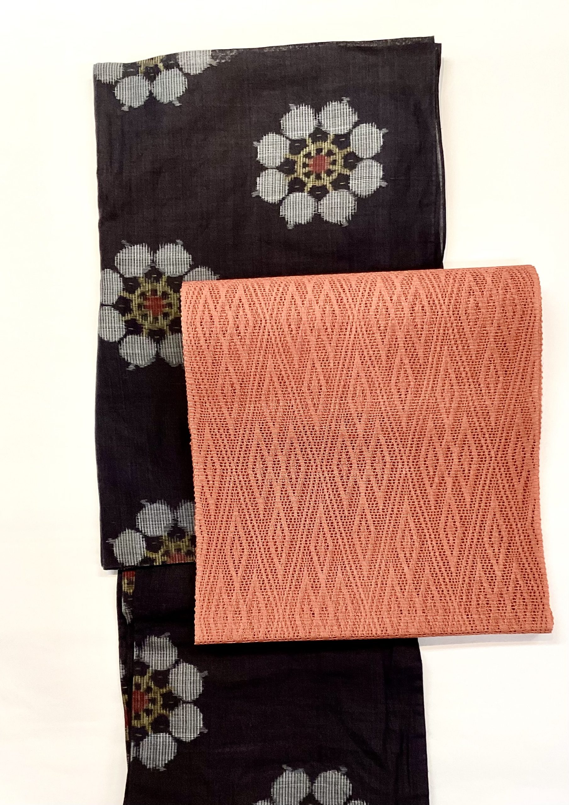 色絣の宮古上布:66000円 身丈4尺5分 裄1尺7寸  帯:30000円
