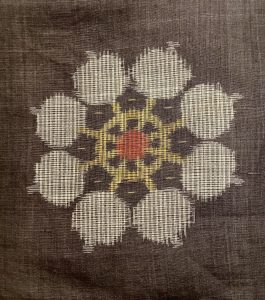 梅の花のようにも見える水車文の宮古上布。今では貴重な色絣です。