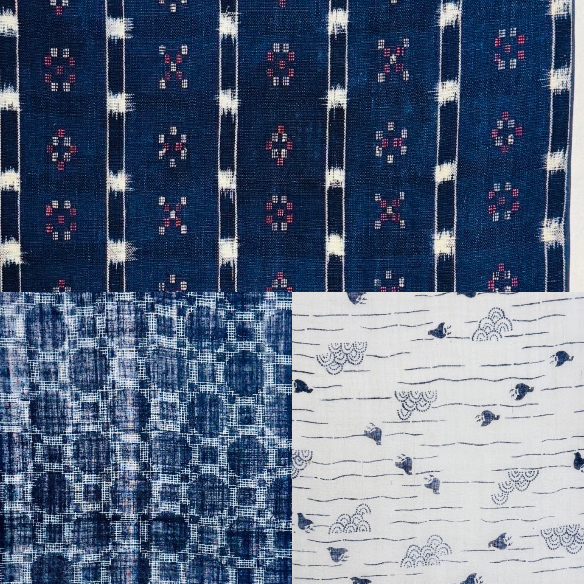 手元には、喜恕嘉と竹富の芭蕉布、首里の紅型、読谷村花織、上布の刷り込み捺染、宮古上布や八重山上布もあります。