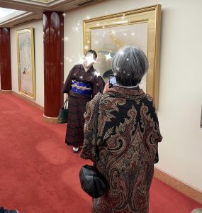 着物姿で訪れる歌舞伎座は格別なもの。歌舞伎座のお宝名画の前での写真撮影もお勧めです!