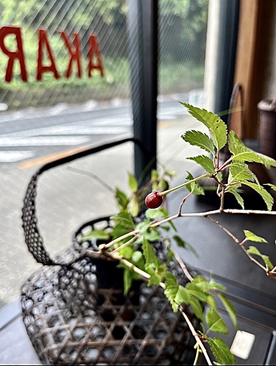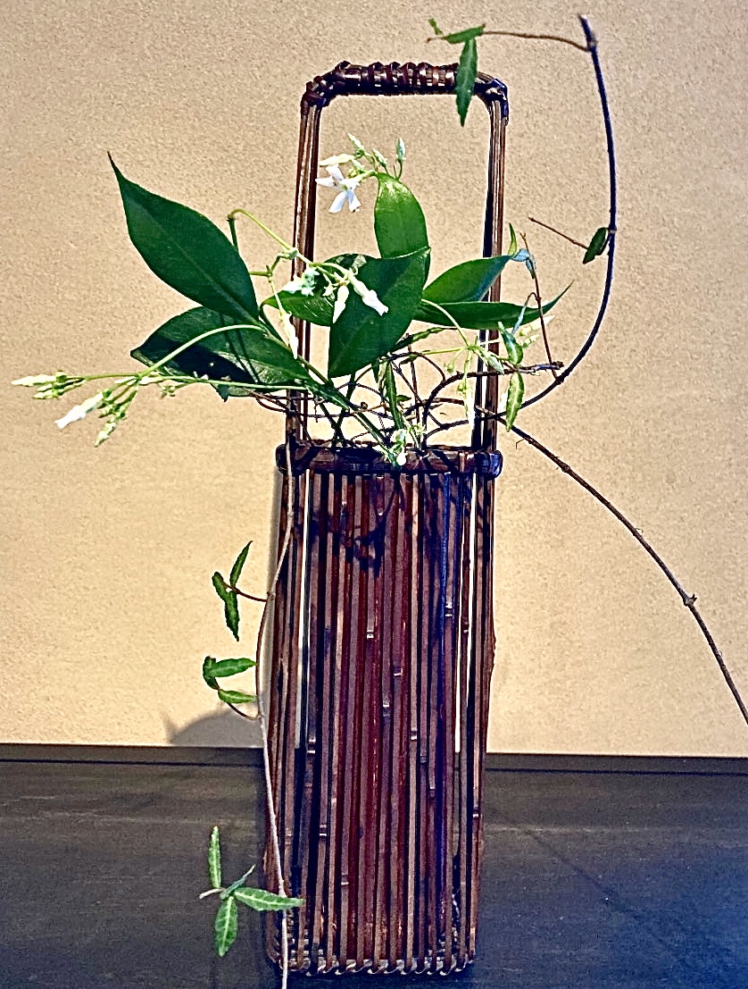 茶室や大きな空間にしか置けない籠かと思いましたが、日常の暮らしの中に、小さな宇宙を感じる籠と野の花のコラボ、とても素敵でした。