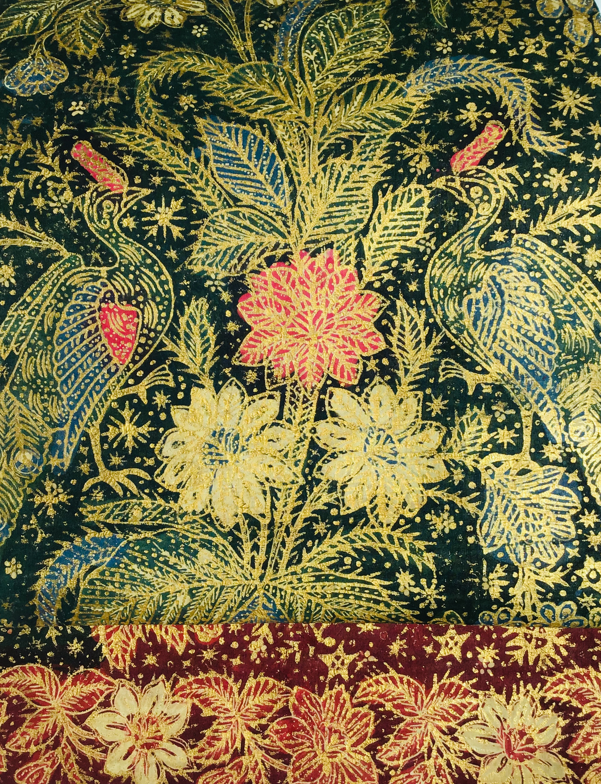 贅沢に印金が施された金更紗は王族など身分の高い人が身につけたのでしょうね。