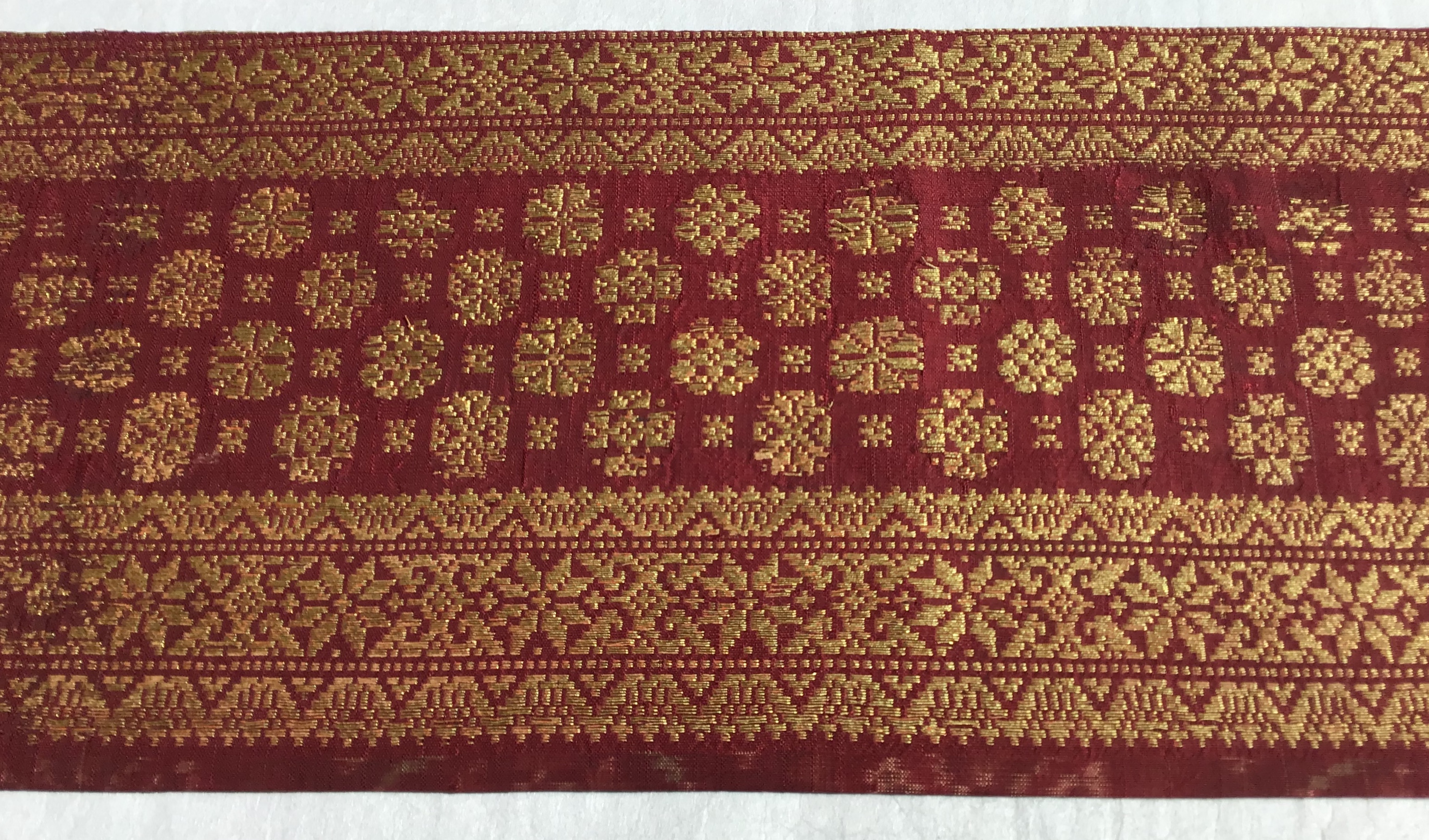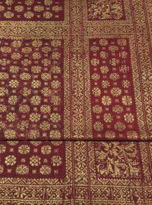 続いては、リマールに縦糸の金モールが華やかなスマトラ島の古布の帯です。