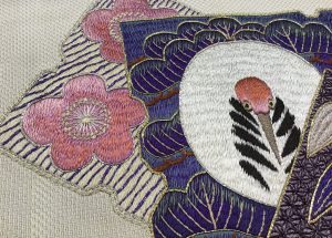 鶴と松竹梅の刺繍名古屋帯