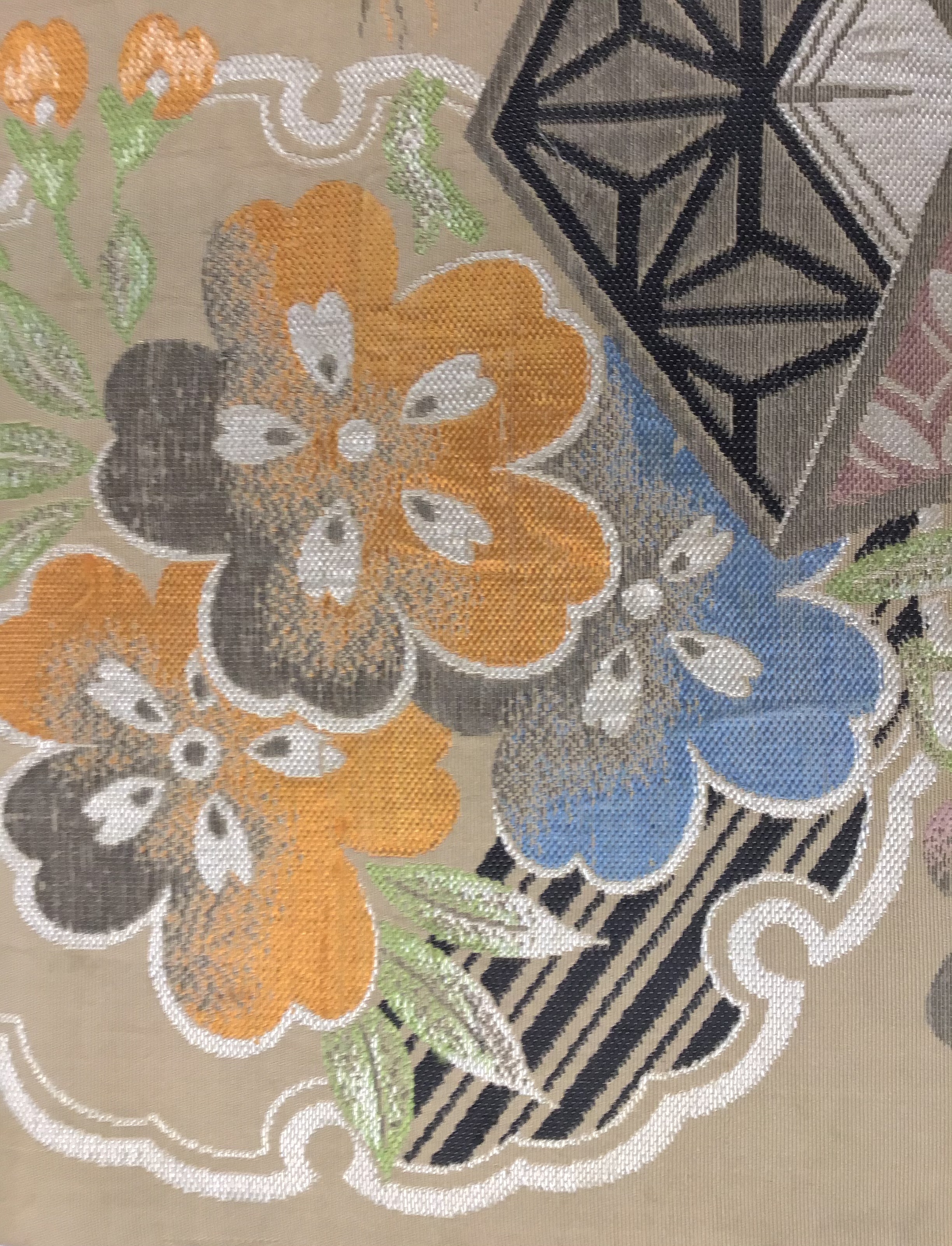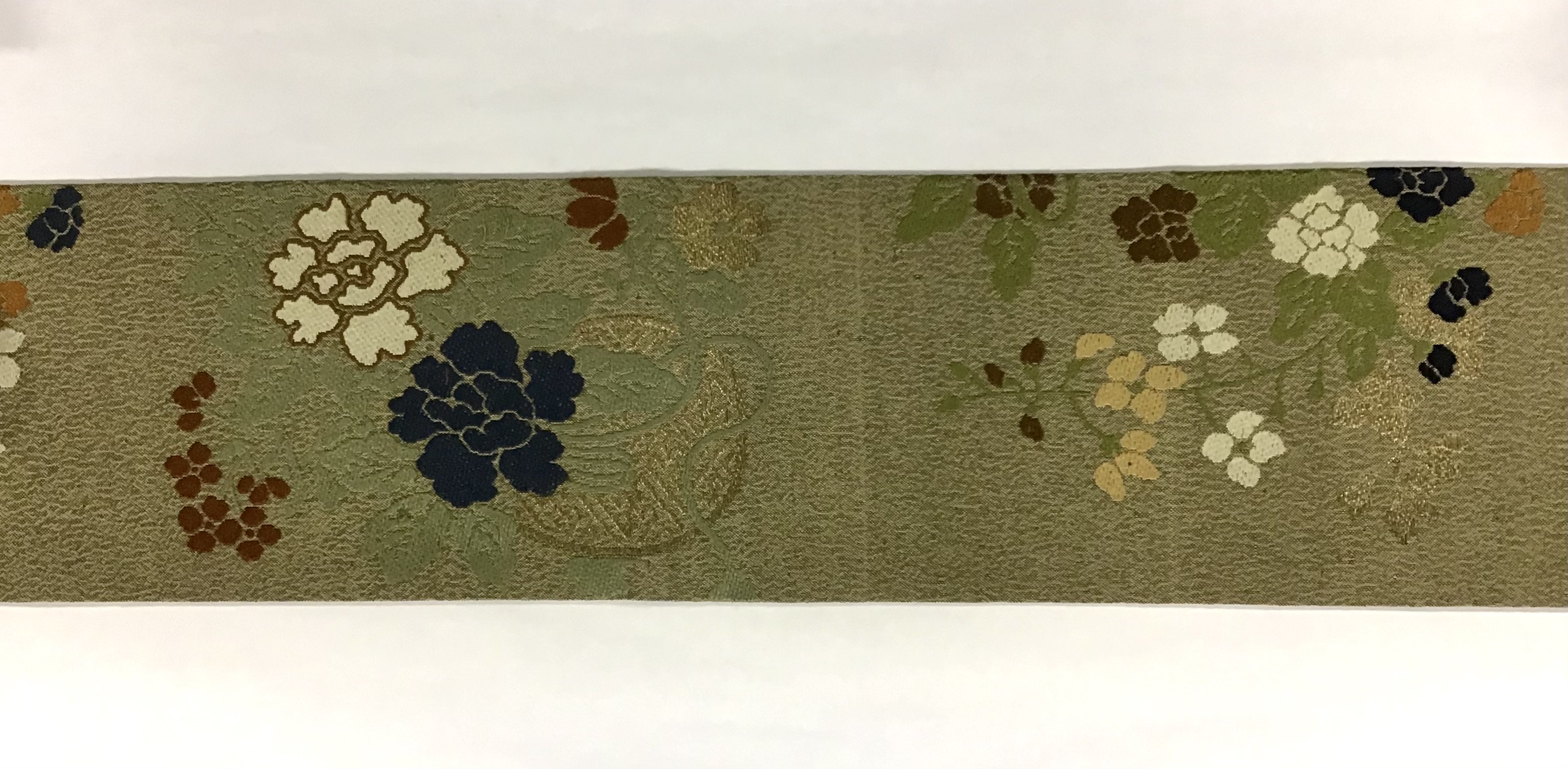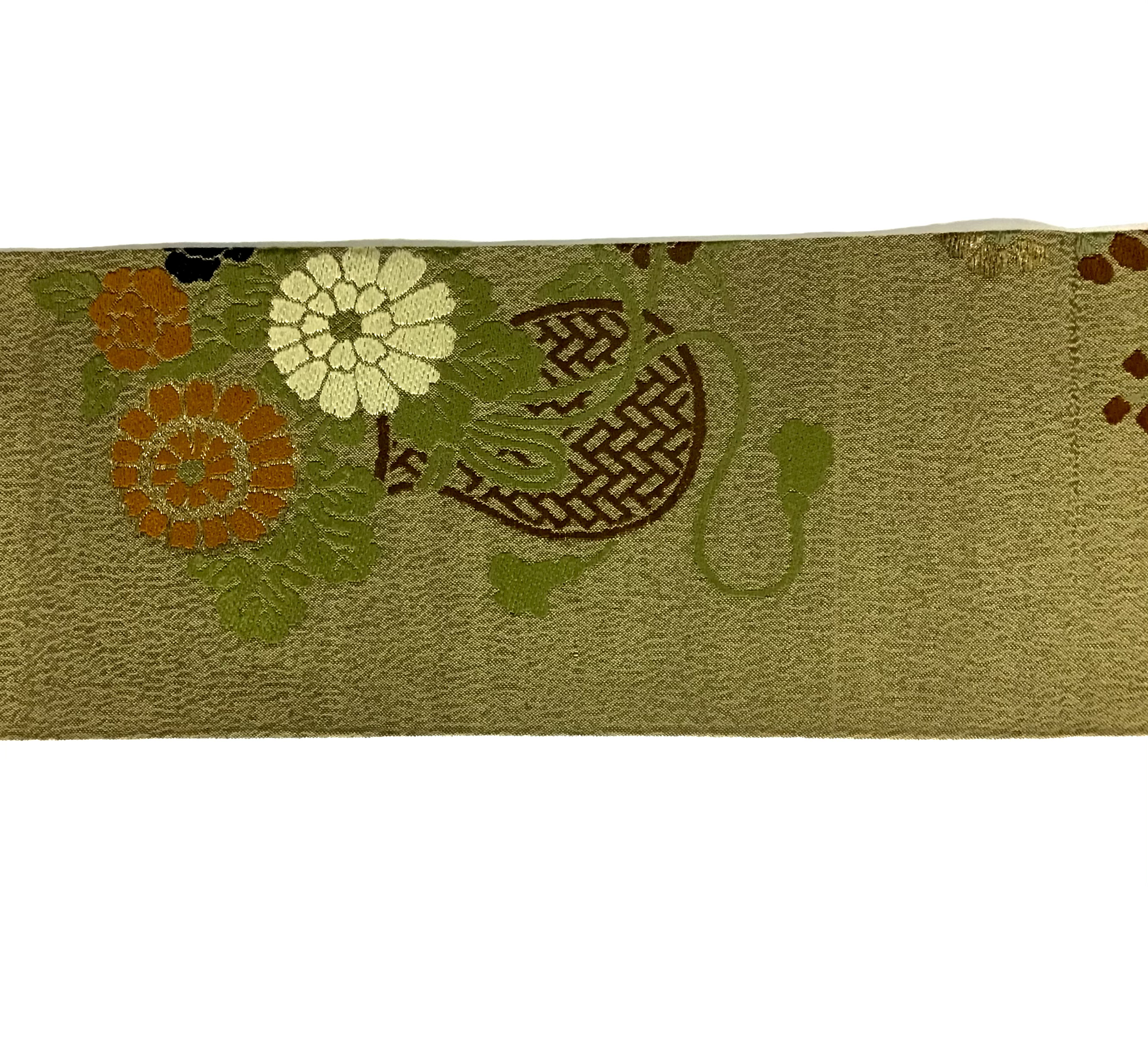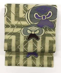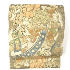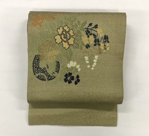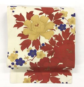3 牡丹、藤の花籠織り名古屋帯