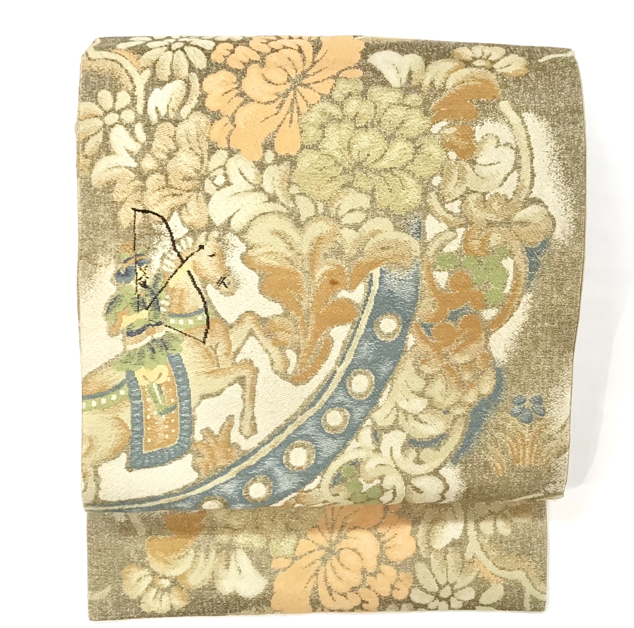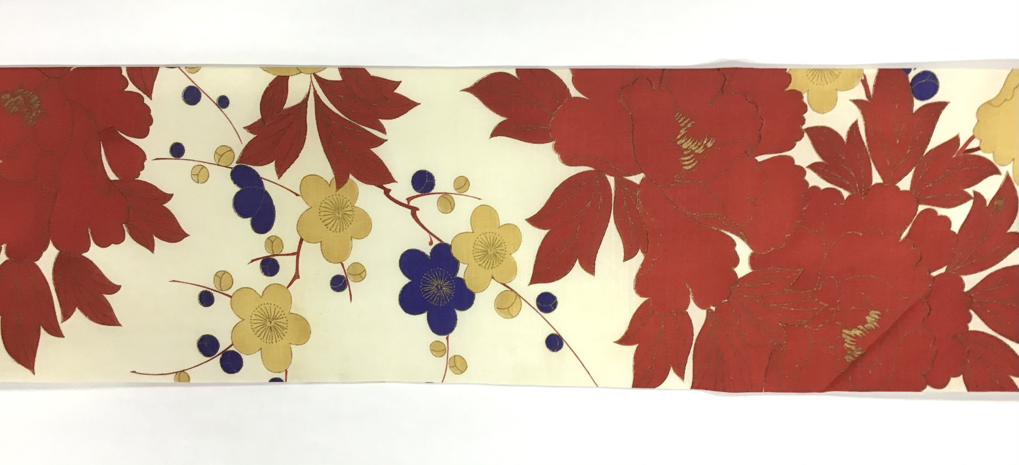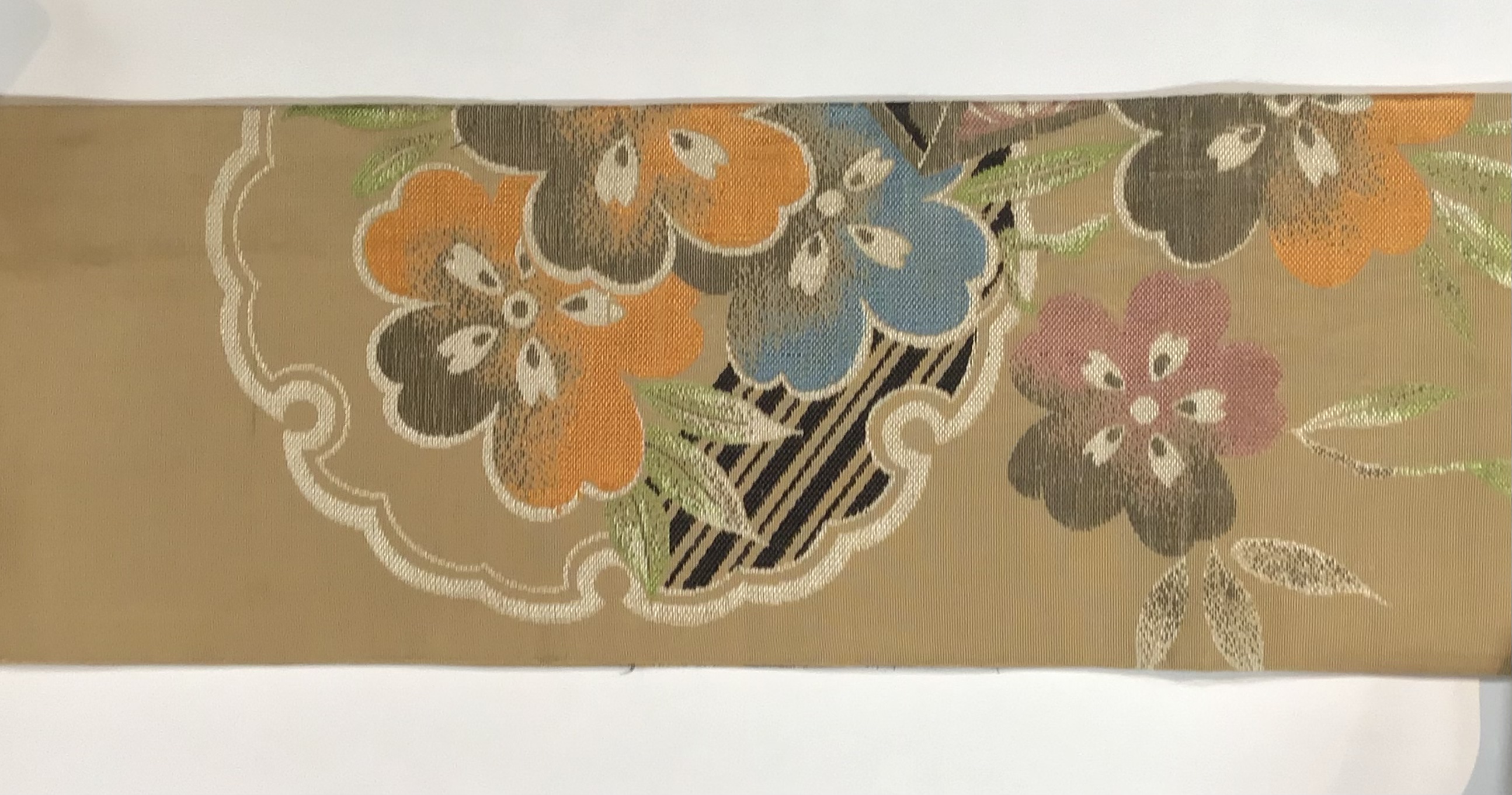 3 牡丹、藤の花籠織り名古屋帯