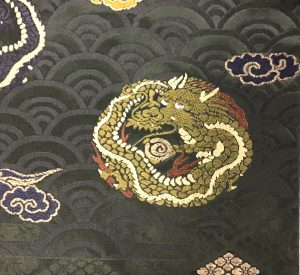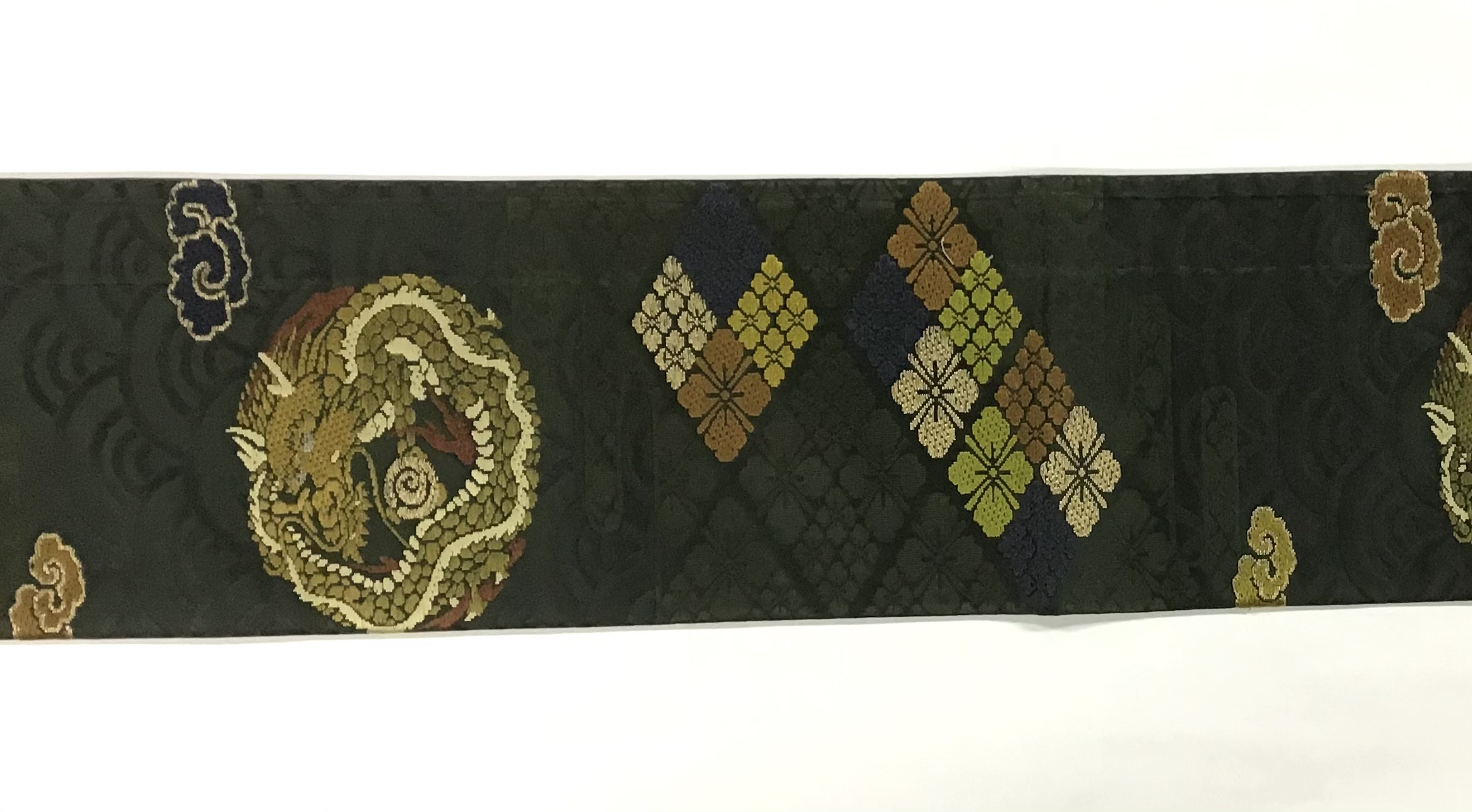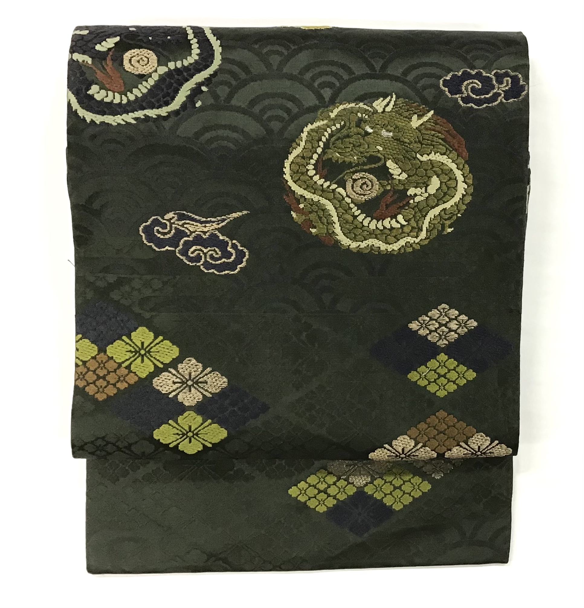 7 青海波に龍と菱文様の織り名古屋帯
