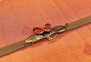 タッサーシルクの帯27500円 鼈甲に瑪瑙の鼓帯留め13200円
