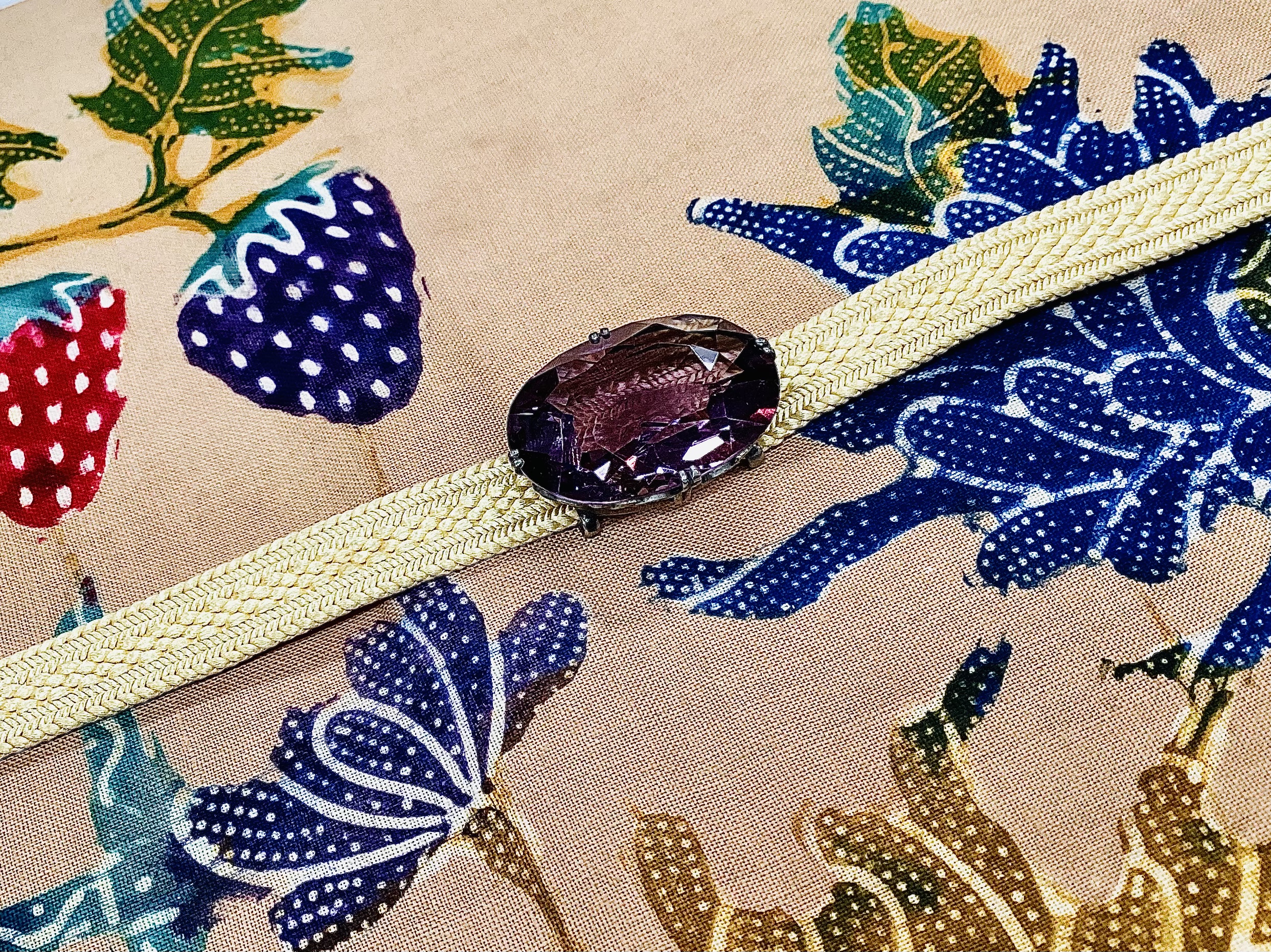 和柄のバティック帯44000円 紫水晶帯留め19800円