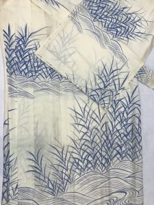 写真は流水に葦の絵羽柄で涼感も格別です。