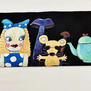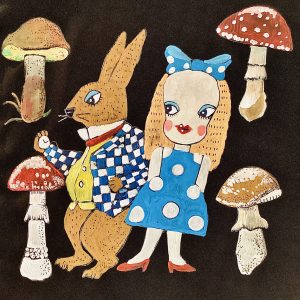 浦野理一の布で作った花緒をすげた赤い塗りの下駄がリンクしてますね!