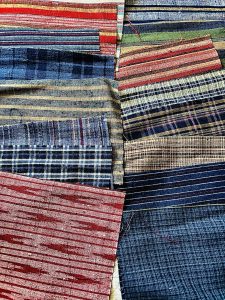 こちらのお客様は伊平織の格子の着物に、インドネシアのモール織の一種、大変貴重な布・パトラの付け帯で華やかな年末の装いのお客様。