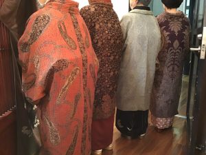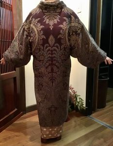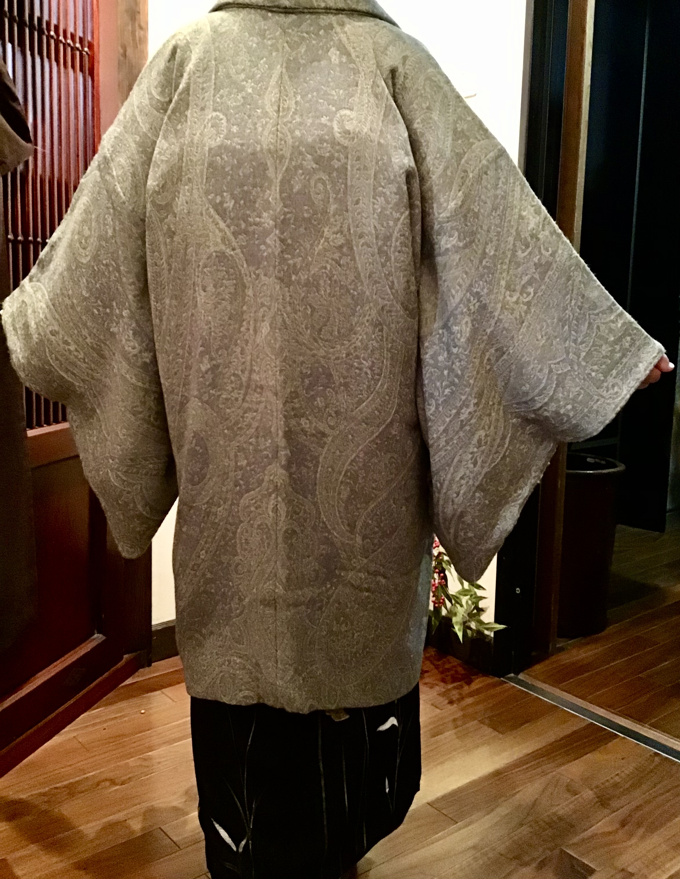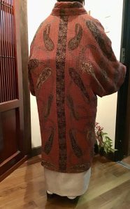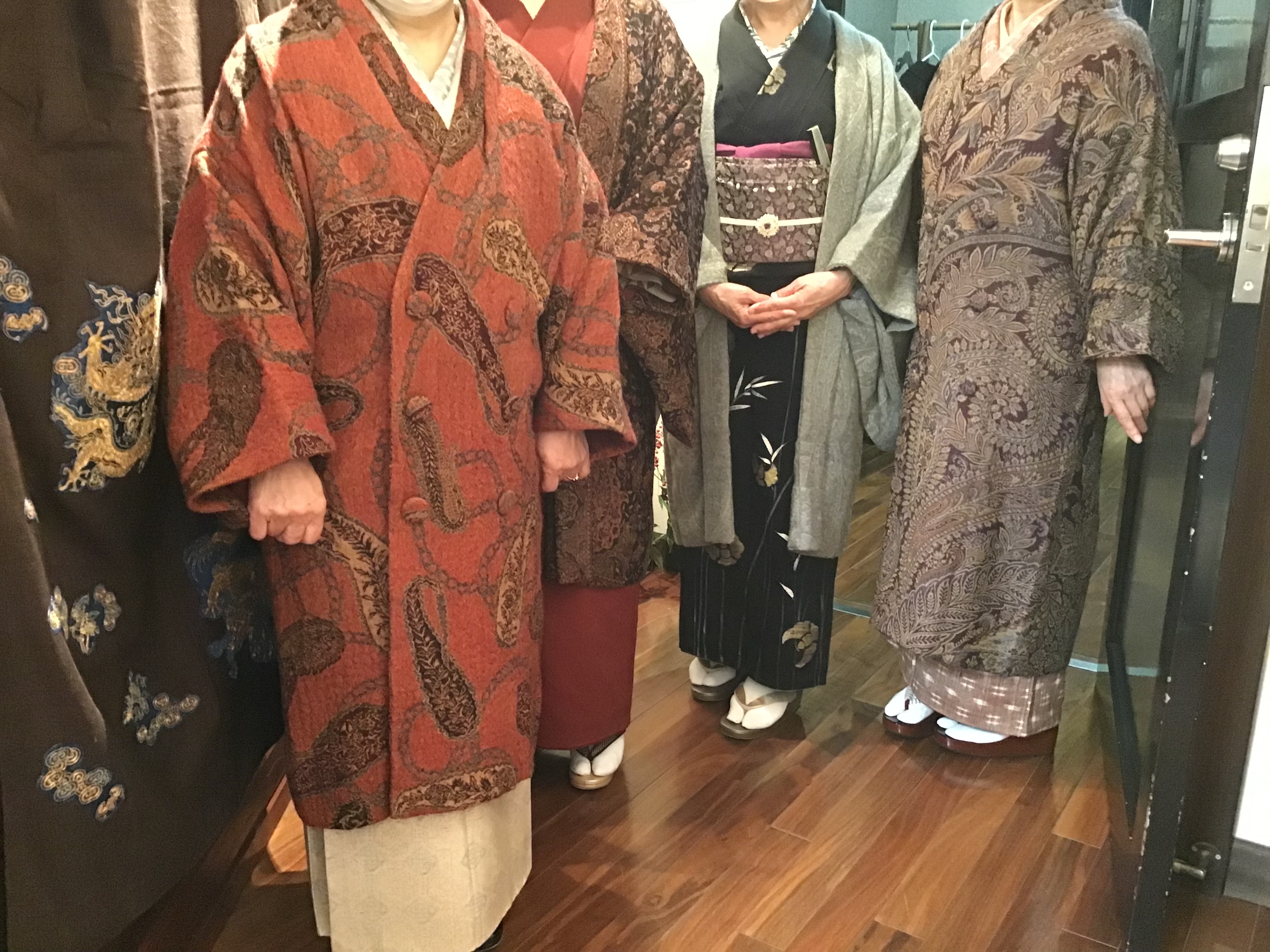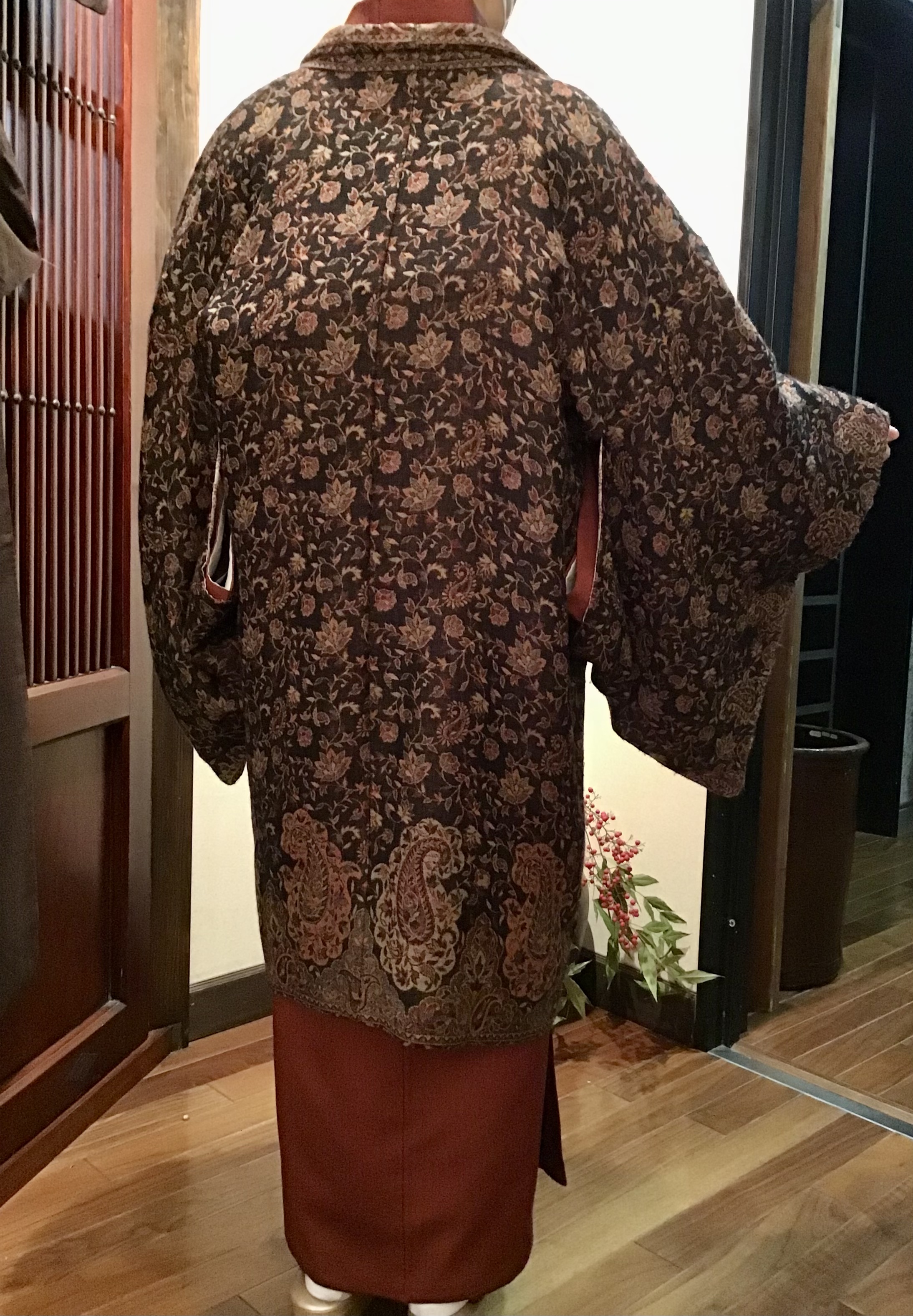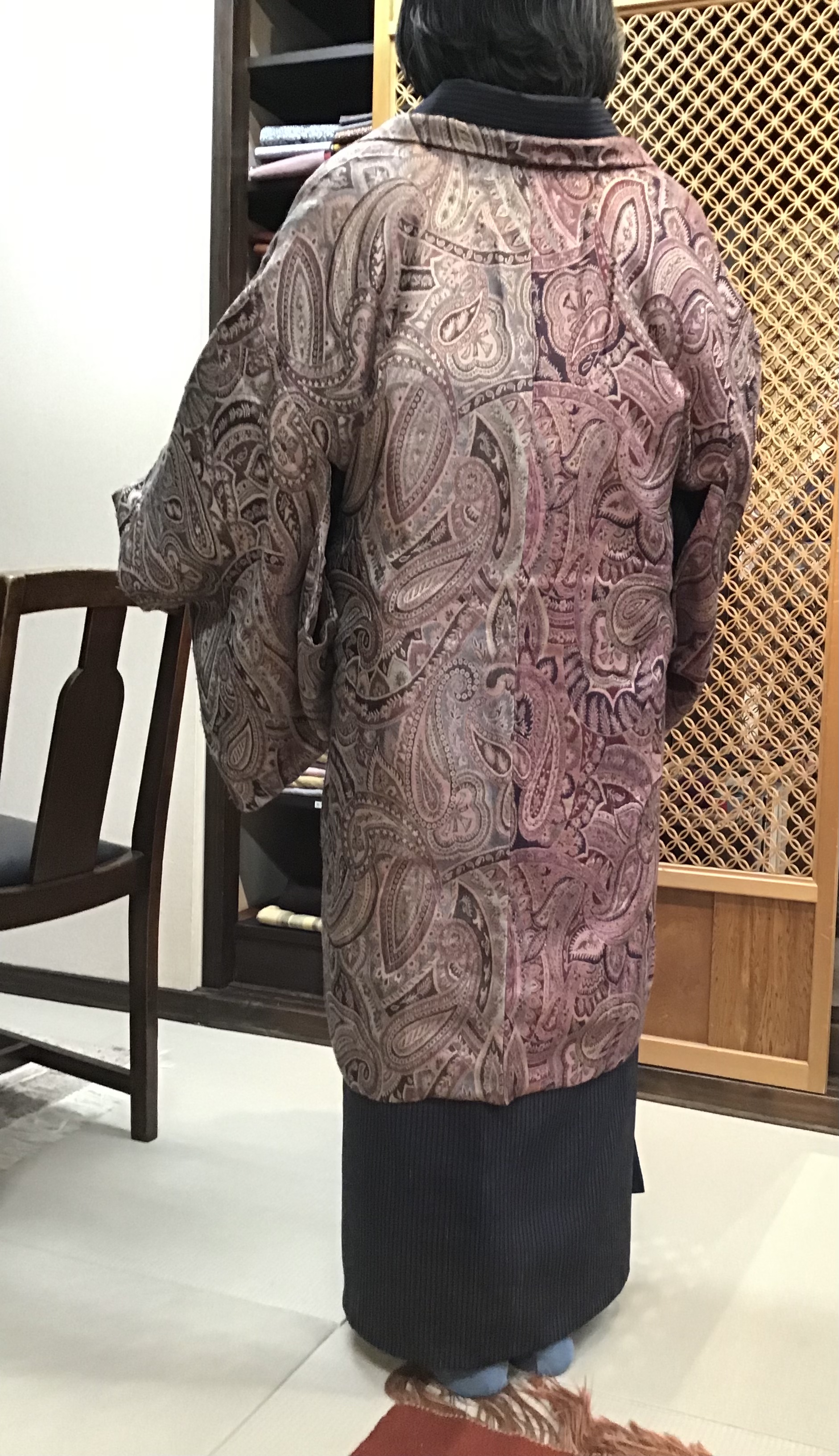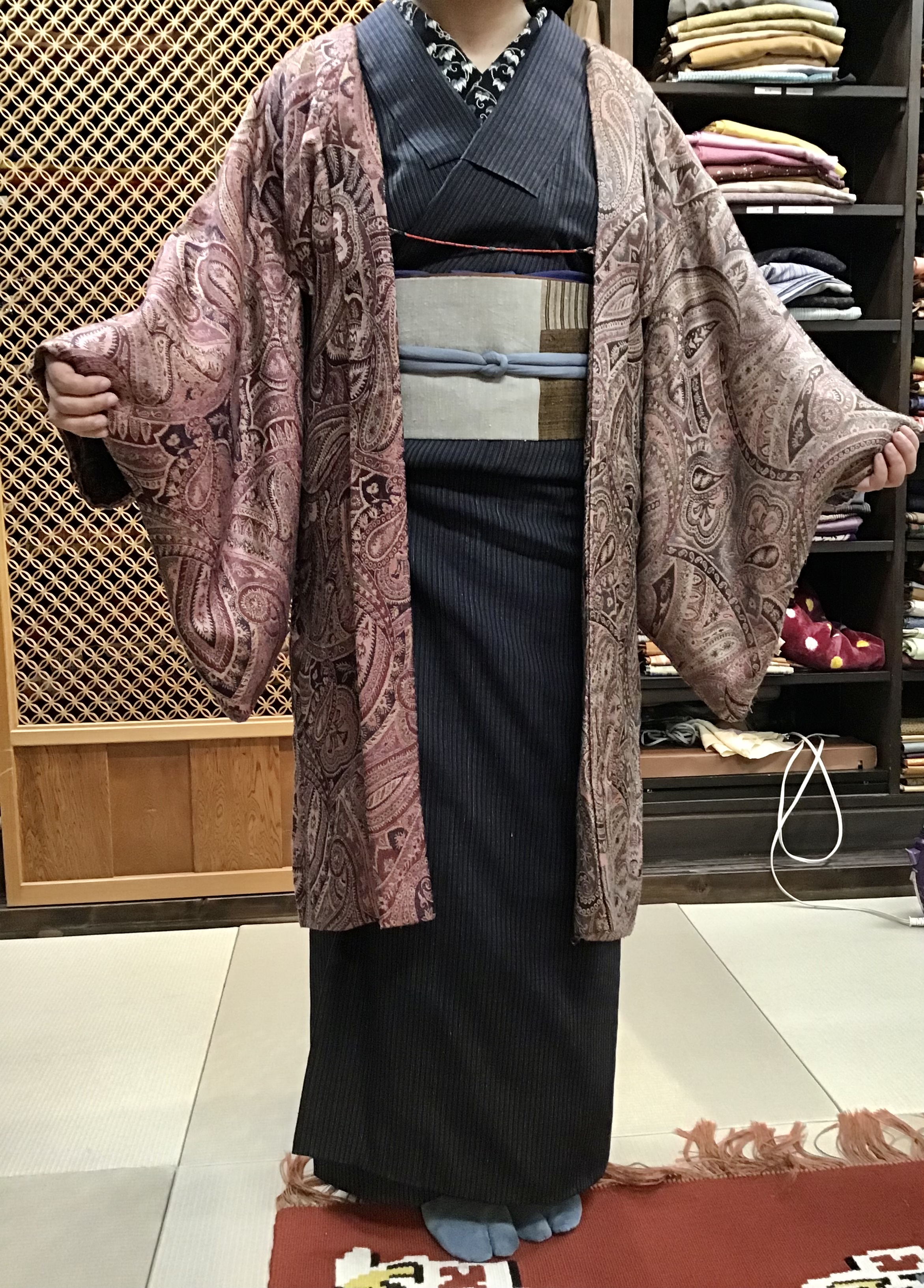 2021年お客様の装い✨カシミールとトラジャの絞り✨ カシミールの片身替りの羽織です。 縞の結城に美しい着姿。 シルクも入っているタイプですので、季節も長くお召しいただけ、軽くて着やすいとお召し頂いたお客様からも大好評! カシミール4姉妹と呼びたくなりました 灯屋2もインドのカシミール素材でいろいろな形の羽織り物をお仕立てしてきましたね! 今年もおかげ様で人気のトラジャの絞りでした。 時代により、絞りの文様や色が、それぞれちがうのも魅力です。