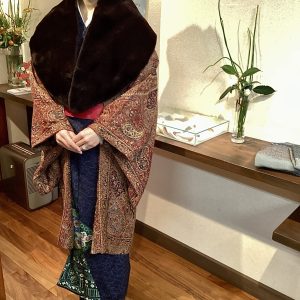 カシミールの羽織とミンクの襟巻きで暖かく!