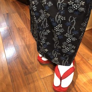 浦野理一の布で作った花緒をすげた赤い塗りの下駄がリンクしてますね!