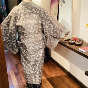そして最後のお客様は、しっとりとした絽縮緬の羽織。正装にも、小紋にも合わせても違った雰囲気に着こなしていらっしゃいます。
