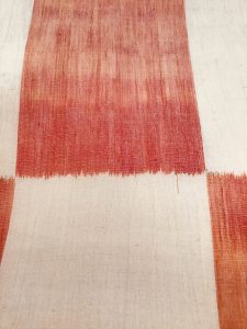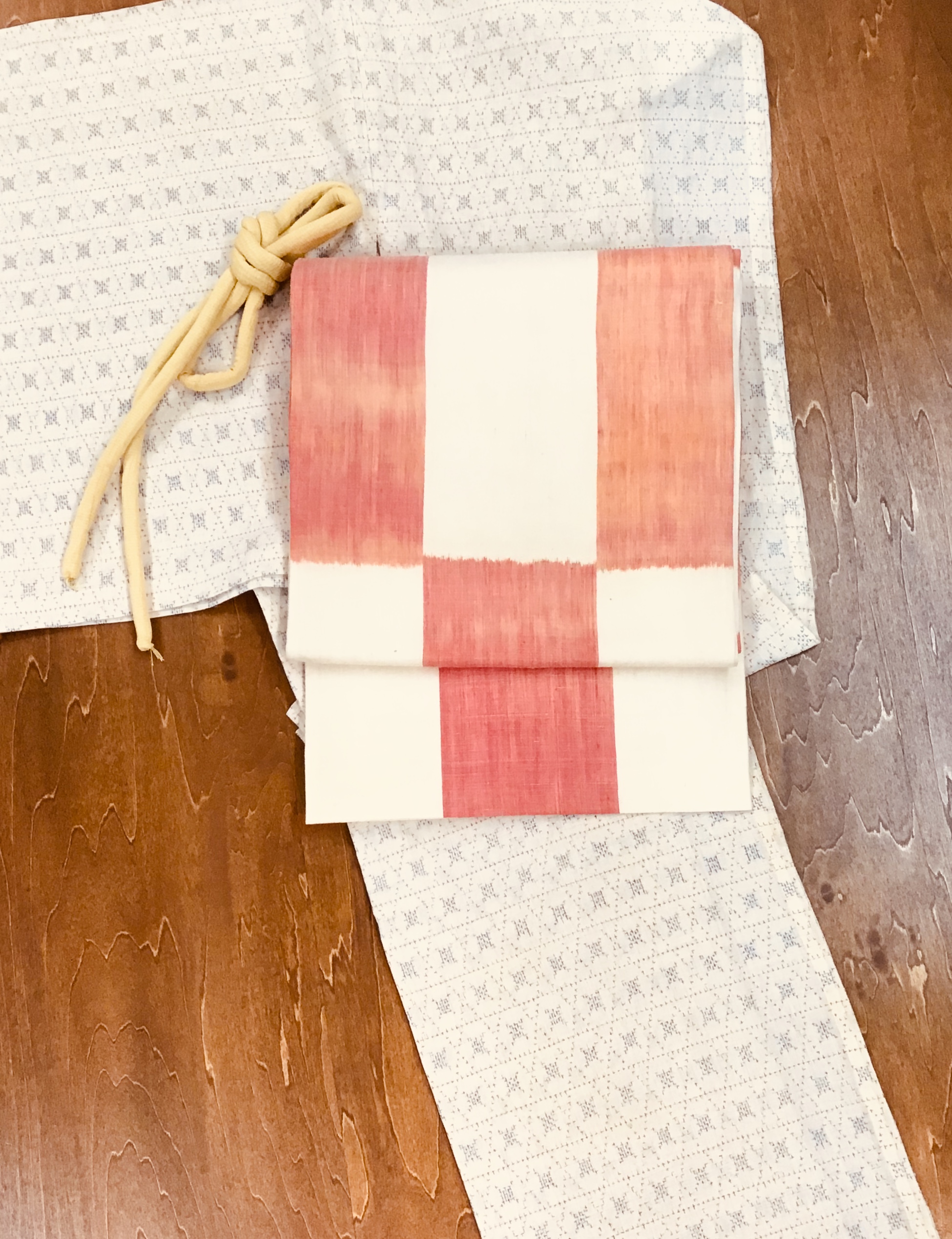 ピンクと生成りの大きな市松文様で全通に仕上がりました。