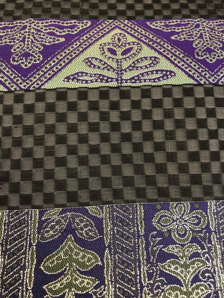 透け感のある紗の横段の市松はとても繊細な中に、なんとも言えない力強さを感じます。