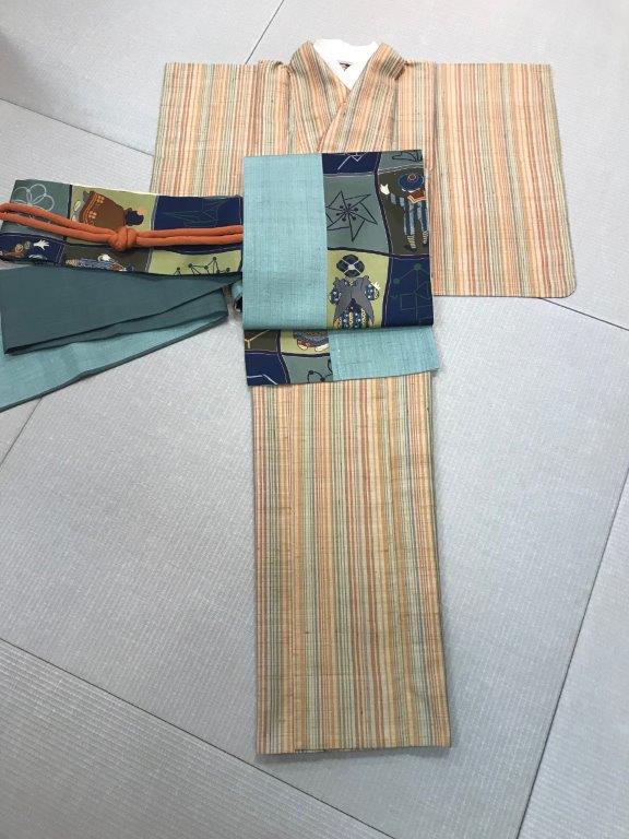単衣縞紬 55000円+税 身丈4尺2寸(約159.6cm)裄1尺7寸5分(約66.5cm)