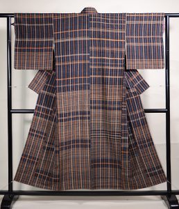 豊かで落ち着きのある絶妙な色彩感覚、基本である格子柄を中心として、しかも個性あふれる絵羽に仕上げている現代感覚。