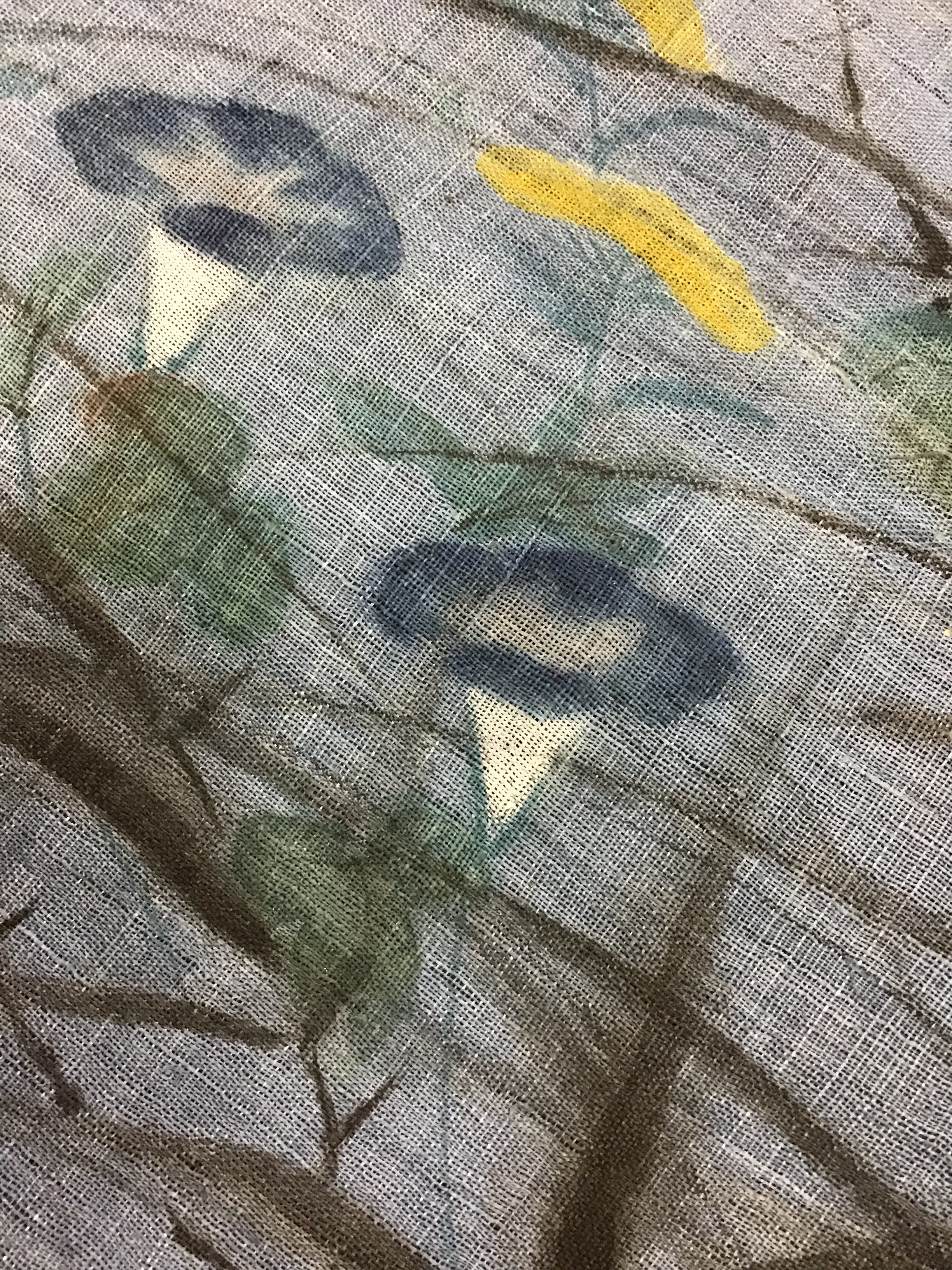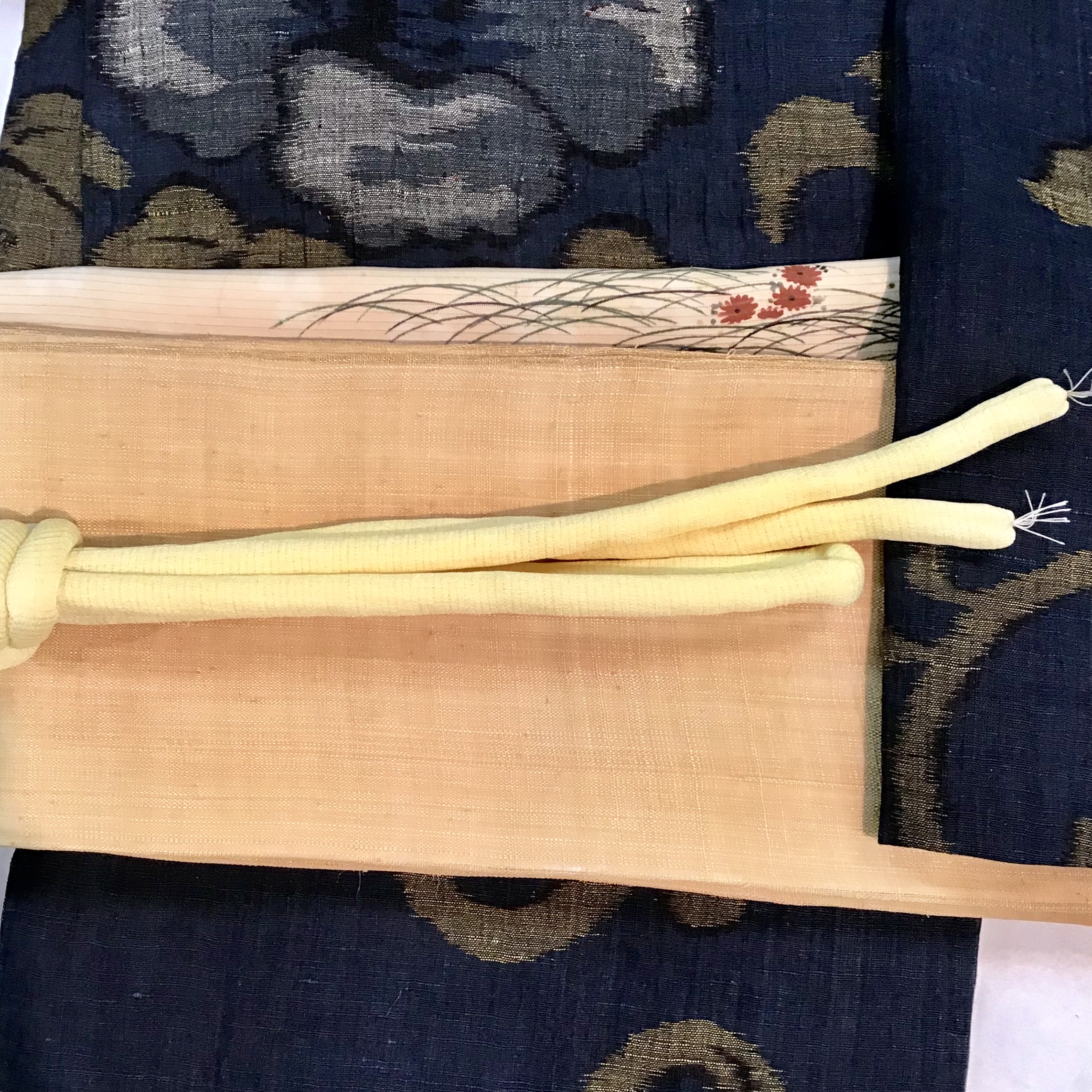 帯は麻の半幅帯を合わせてみました。暑い日の気軽なお出かけにいかがでしょうか。