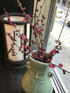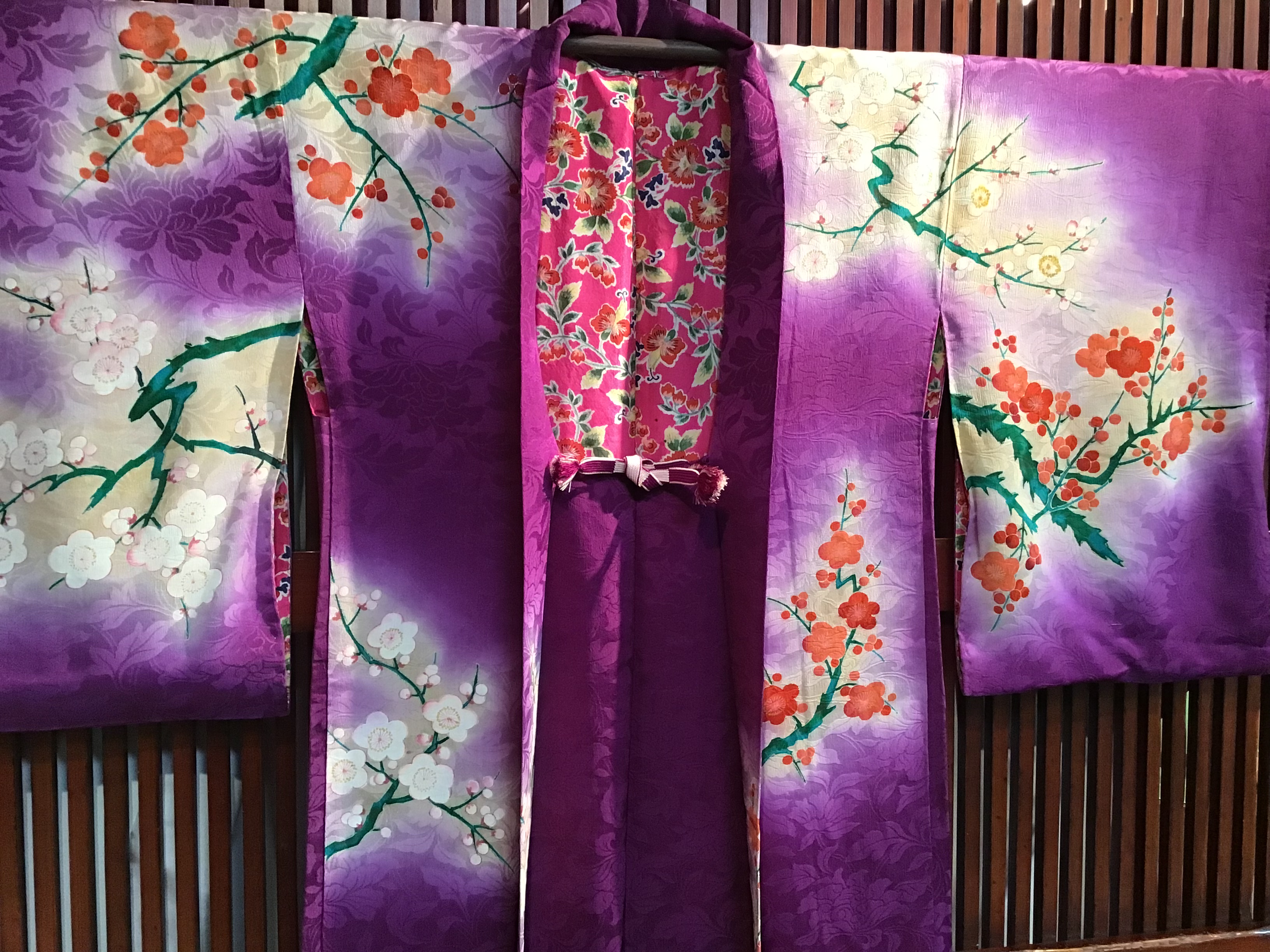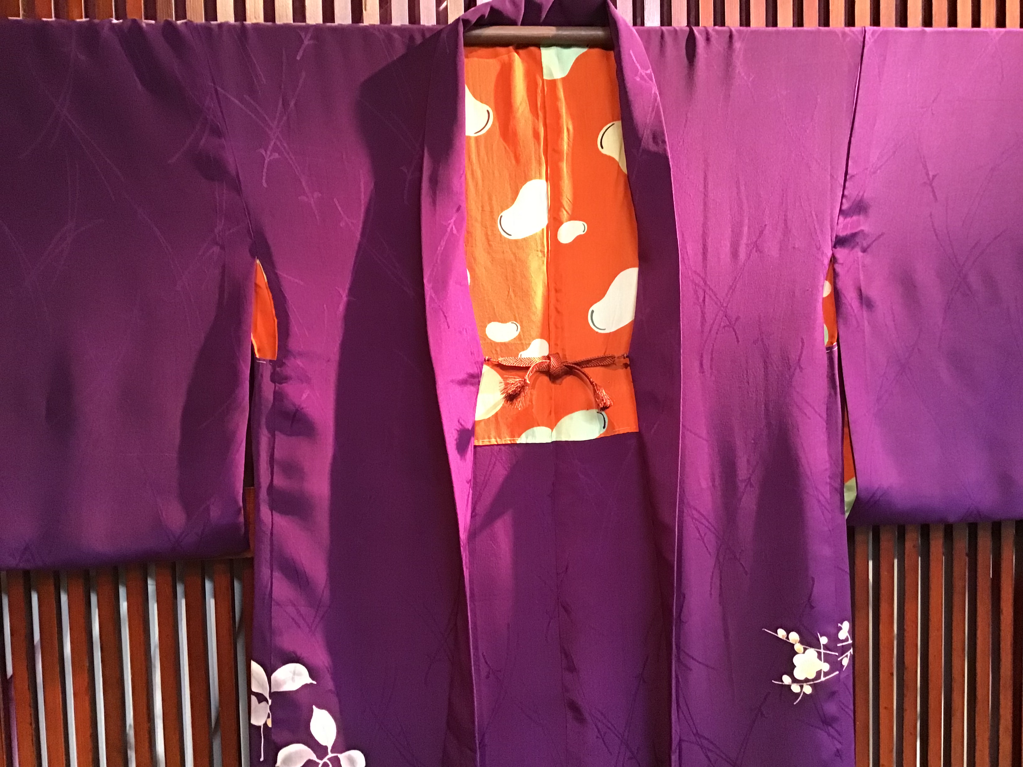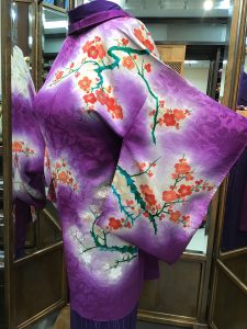 こんな目にも鮮やかな紫の梅の羽織は、眺めているだけでも嬉しいですね。
