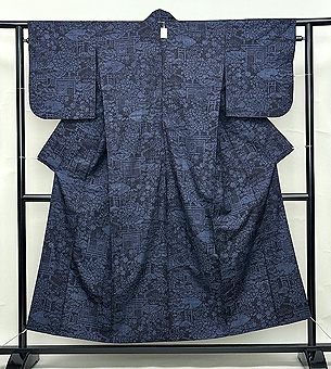 深い藍の中にかわいいドットが並んで大人かわいいきものになっています。