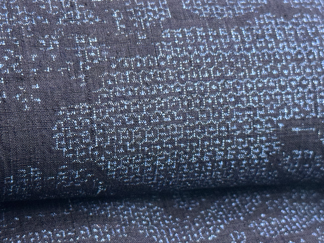 藍色と黒糸の織り合わせなので、鼠色っぽく見えますが、少し色の冷めたお納戸色という事でしょうか。