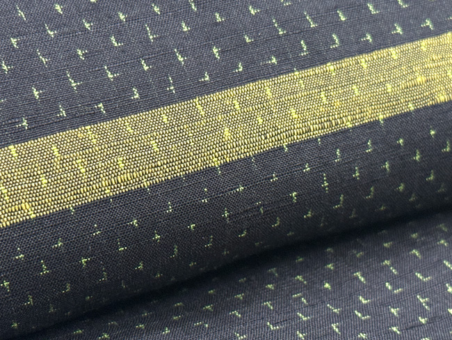 縦に色糸を入れて縞柄を構成し、緯糸に時に太い節糸を入れて、横の畝りを作っています。