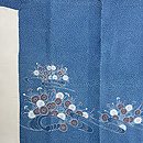 落ち着いた白色の縮緬に、海辺のさまざまな貝を散りばめた付下です。