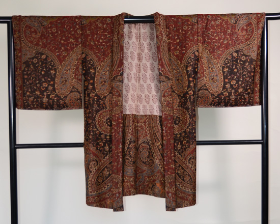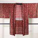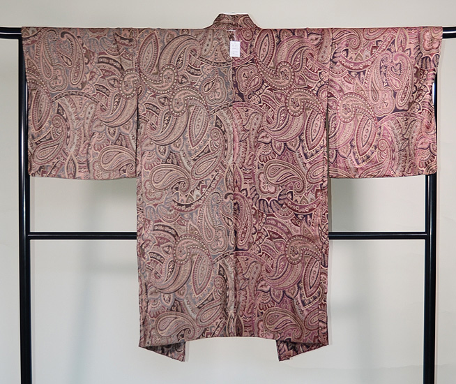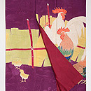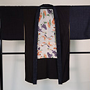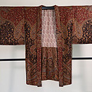 紫の紗綾形地紋に、大胆な柿枝の構図が見事な楽しい羽織です。