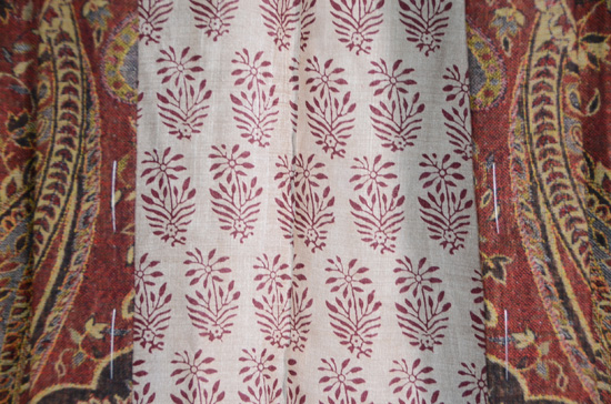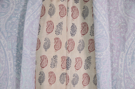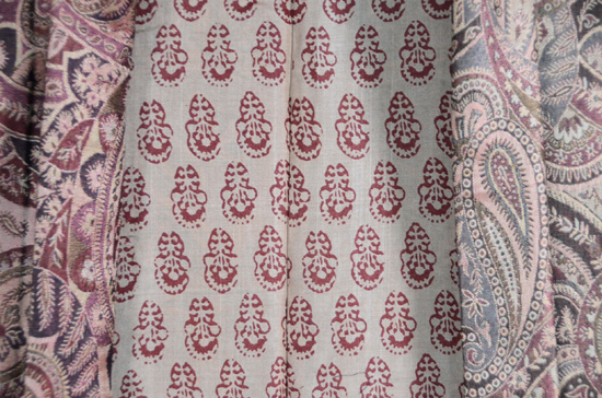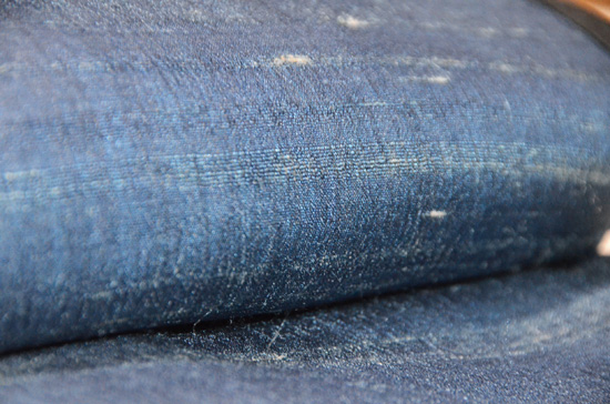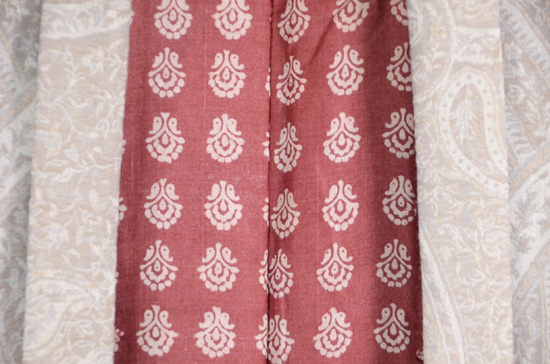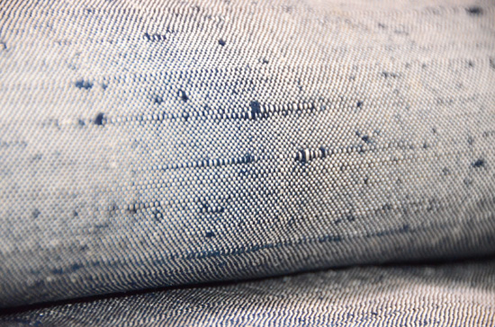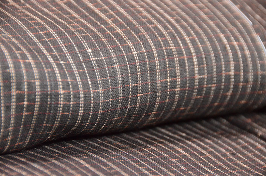 経糸の生成り色と緯糸の茶色が混じり合った薄い赤茶色の伊平衛織。