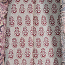 牡丹色と赤紫の濃淡に咲き誇る牡丹の地紋織り。