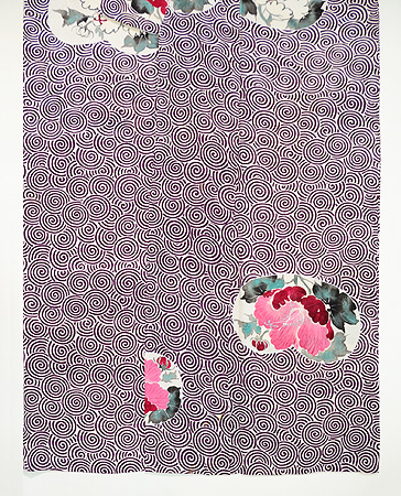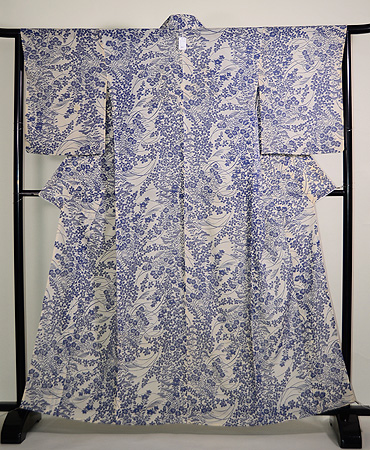 大輪の牡丹の花が波に揺られて、涼気たっぷりな単衣小紋です。