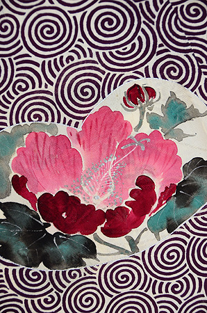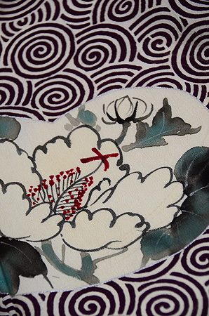 クッキリと残された牡丹の葉っぱの中には、渦巻き文様が透かしで入っています。