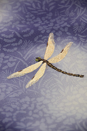 深い紫の引き締まった佇まいですが、愛嬌のある蜻蛉たちが程よく緊張感を和らげています。