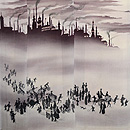 烏と鷺の単衣羽織